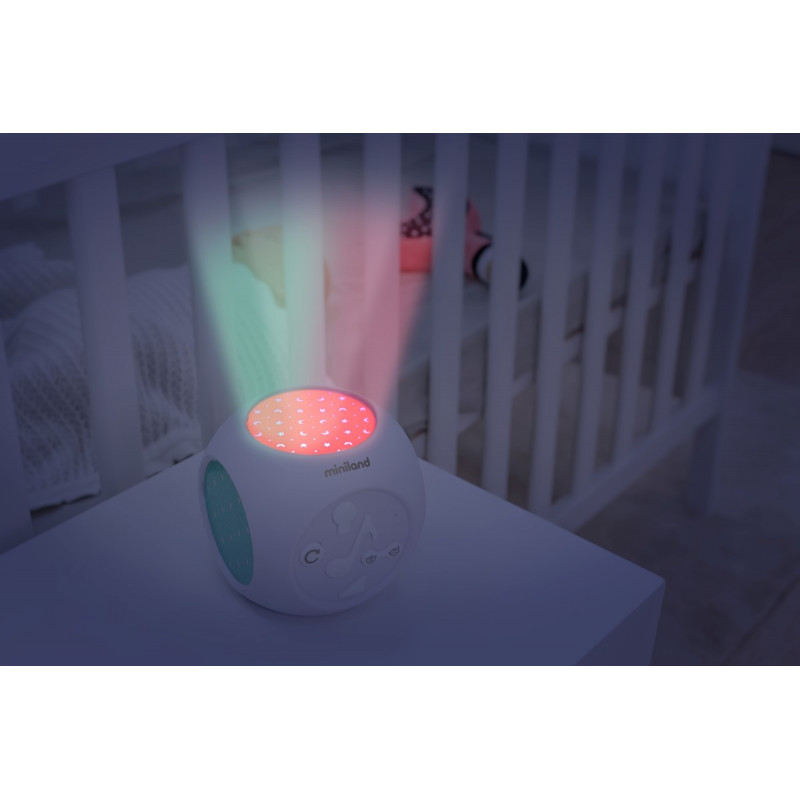 El proyector puede funcionar de forma continua o mediante activación por sonido, en cuyo caso permanecerá en reposo mientras el bebé descansa plácidamente, activándose automáticamente si detecta su llanto para ayudarle a dormir de nuevo. Además, pasados tres minutos volverá a apagarse para no molestar al bebé en el caso de que ya haya conciliado el sueño.