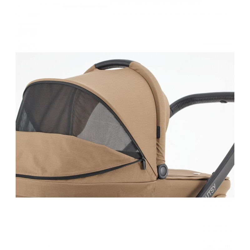 El carrito Mutsy Flow es un novedoso carro de dos piezas robusto, moderno y compacto a la vez. Es un carrito ideal para la vida en ciudad y las escapadas al campo ¡todo en uno! Incorpora amortiguación en las 4 ruedas, evitando que el carro Mutsy Flow vibre con el capazo o con la silla de paseo. Además, las ruedas cuentan con rodamientos sellados haciendo que sean mucho más suaves y silenciosas. El capazo tiene un diseño novedoso debajo del colchón que asegura la buena ventilación y evita a la vez que entre el aire frío. Es mucho más ligero y no utiliza bases de madera ni fibra de madera, siendo así más respetuosos con el medioambiente. El capazo además está cubierto por una estructura textil y sus varillas permiten plegarlo para guardarlo y transportarlo con mayor comodidad. La capota incluye dos zonas de malla de ventilación que se pueden abrir y cerrar con facilidad.
