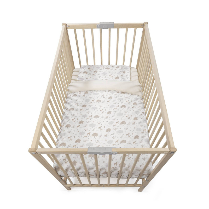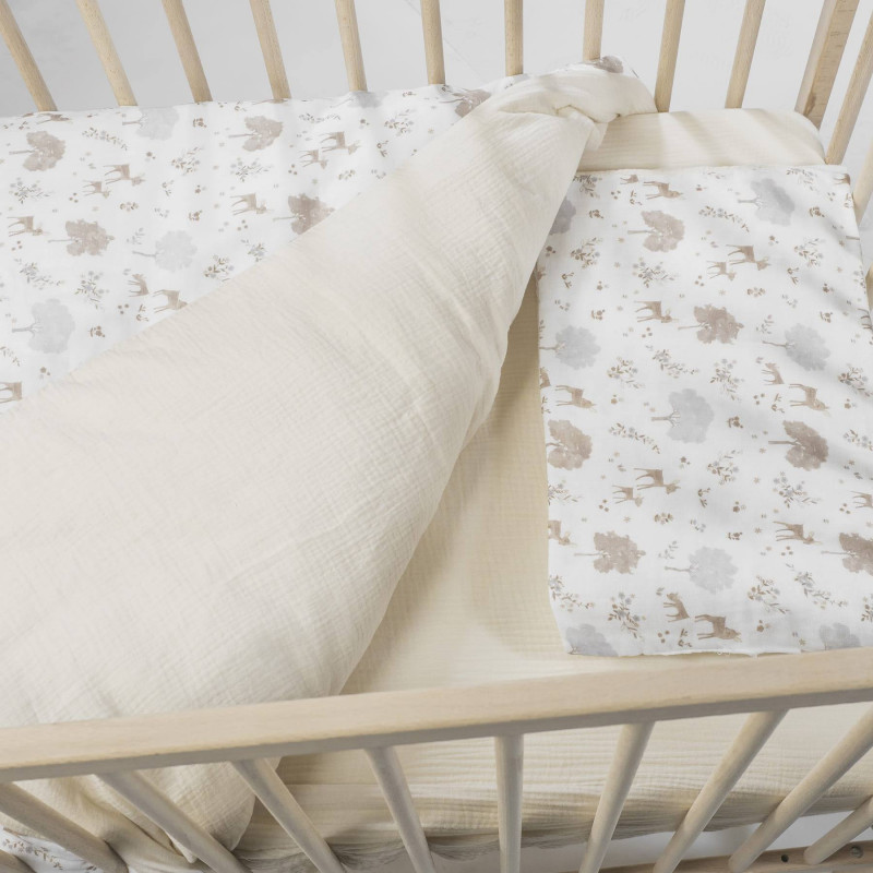 Prepara el nido perfecto para tu bebé con el set completo de ropa de cuna 120×60 cm o minicuna 50x90 de la adorable colección Nara de Pasito a Pasito. Este conjunto todo en uno ha sido cuidadosamente diseñado para ofrecer el máximo confort, seguridad y estilo en la habitación de tu pequeño, cumpliendo con la estricta normativa EN-16780 para tu tranquilidad. El set incluye: funda de edredón y edredón (relleno), ambos confeccionados en 100% algodón de alta calidad, garantizan una suavidad inigualable y una transpirabilidad óptima. El edredón proporciona la calidez necesaria para un sueño confortable, mientras que la funda, con el encantador estampado de la Colección Nara (ciervos y árboles en tonos neutros), añade un toque de dulzura y elegancia a la cuna. Sábana bajera ajustable de muselina 100% algodón, un elemento esencial para el descanso del bebé. Fabricada con muselina de algodón 100%, esta sábana es excepcionalmente suave, ligera y transpirable, ideal para la delicada piel del recién nacido. Su diseño ajustable con elástico asegura un ajuste perfecto al colchón de 120×60 cm o minicuna 50x90, evitando arrugas y garantizando una superficie de descanso segura. Almohada con rejilla 3D transpirable, pensada para el soporte y la ventilación. El interior de la almohada incorpora una rejilla 3D transpirable que favorece la circulación del aire, ayudando a prevenir la acumulación de calor y humedad. Esto contribuye a un entorno de sueño más fresco, higiénico y seguro para tu bebé. La colección Nara de Pasito a Pasito se distingue por su diseño atemporal y unisex, que combina a la perfección con cualquier estilo de decoración infantil. Los materiales utilizados, 100% algodón en todas las piezas, son respetuosos con la piel sensible del bebé, además de ser fáciles de mantener, ya que todas las prendas son lavables a máquina. Este juego de cuna de 120×60 cm es la solución ideal para vestir la cuna de tu bebé con productos de alta calidad que priorizan su bienestar. Un regalo perfecto para futuros padres o una inversión inteligente para asegurar un ambiente de sueño seguro, cómodo y hermoso. Descubre la excelencia de Pasito a Pasito en cada detalle. Set completo de cuna 120×60 o minicuna 50x90 Nara de Pasito a Pasito: edredón, funda, sábana bajera de muselina y almohada transpirable. 100% algodón. ¡Confort y seguridad! Todos nuestros productos están fabricados conforme a las más exigentes normativas europeas, con materiales de gran calidad, libres de colorantes azoicos, ftalatos y sustancias nocivas para la salud. Tela de fácil limpieza, se recomienda lavar a máquina a 30º. Los productos para bebé de Pasito a Pasito cuentan con un diseño muy diferente a todas las demás. Sus colecciones se caracterizan por el trabajo al detallada, pensadas siempre desde un punto de vista práctico. Utilizan materiales de primera calidad para remarcar la elegancia y la armonía en cada una de sus piezas. Nuestros modelos son exclusivos y de estilo inconfundible, pensados en las madres actuales que gozan de buen gusto y que aprecian los detalles tanto como nosotros.