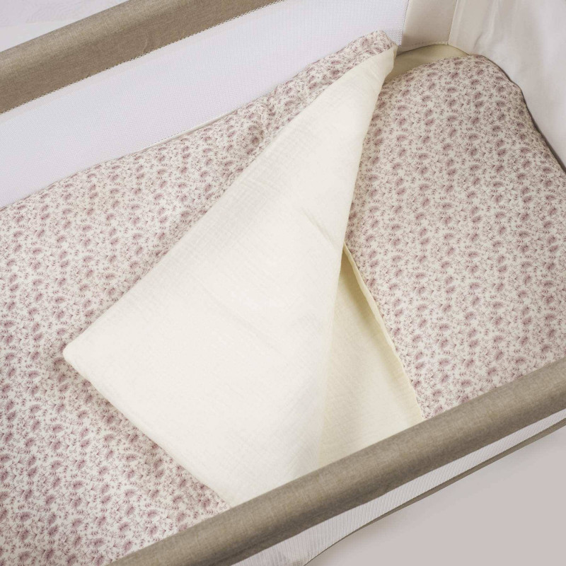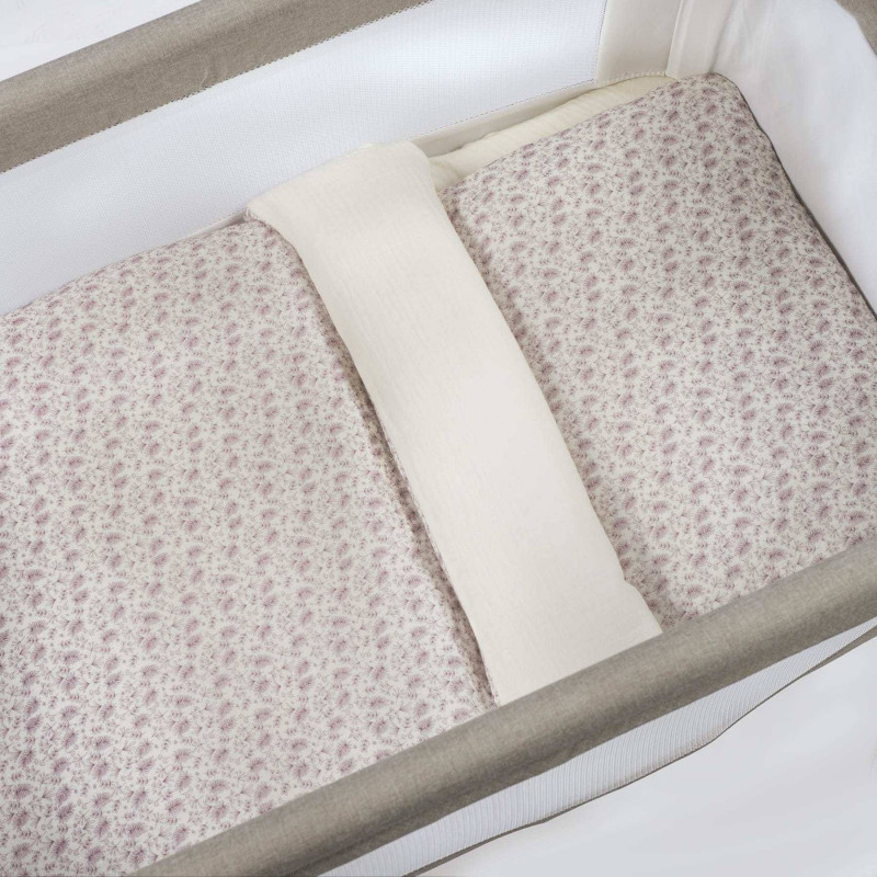 Todos los elementos de este set están fabricados en 100% algodón perfecto para la piel delicada de los bebés. La muselina de la bajera añade un extra de suavidad y adaptabilidad.
