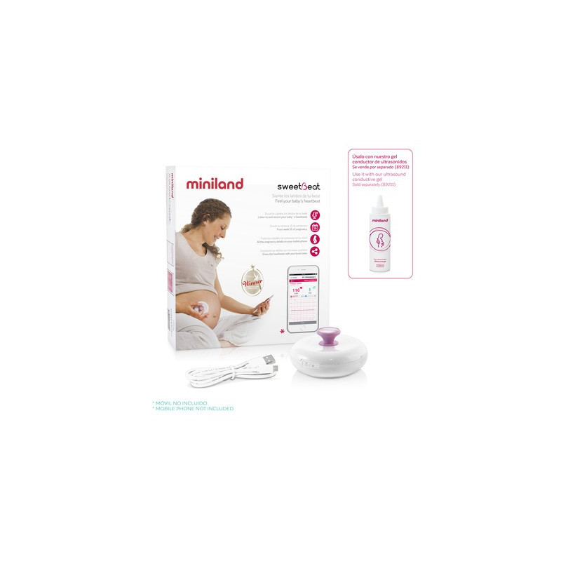 El diseño redondo y compacto de sweetBeat y su reducido tamaño lo hacen muy cómodo y fácil de utilizar para las mamás. Además cuenta con batería recargable mediante cable microUSB.
