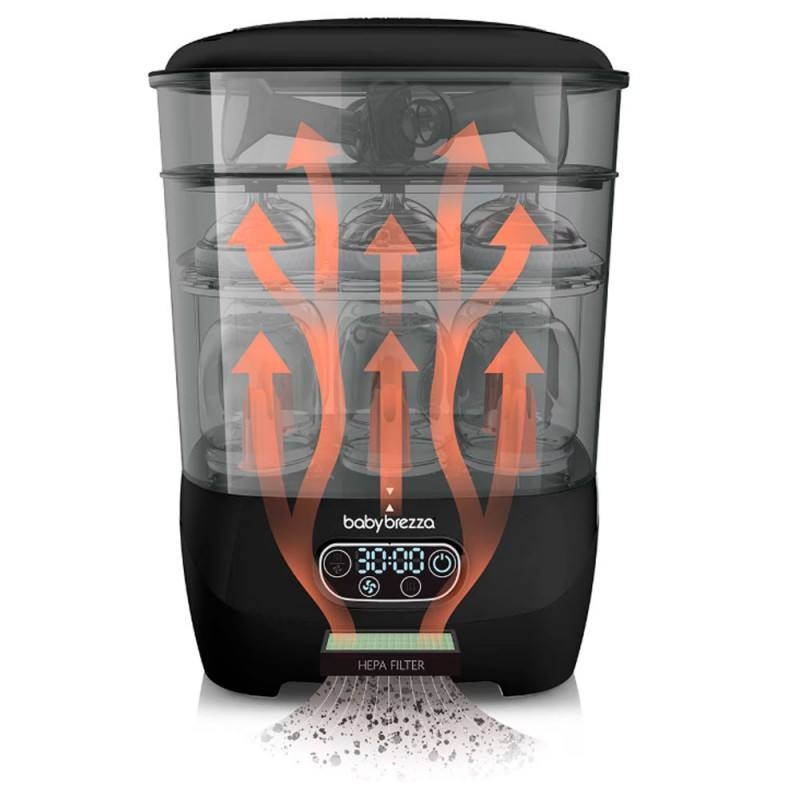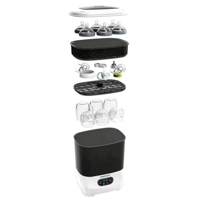 El esterilizador y secador Advanced One Step de Baby Brezza es de gran capacidad. Podrás esterilizar y secar hasta 8 biberones con sus accesorios, así como piezas del sacaleches o chupetes en sus distintas bandejas.