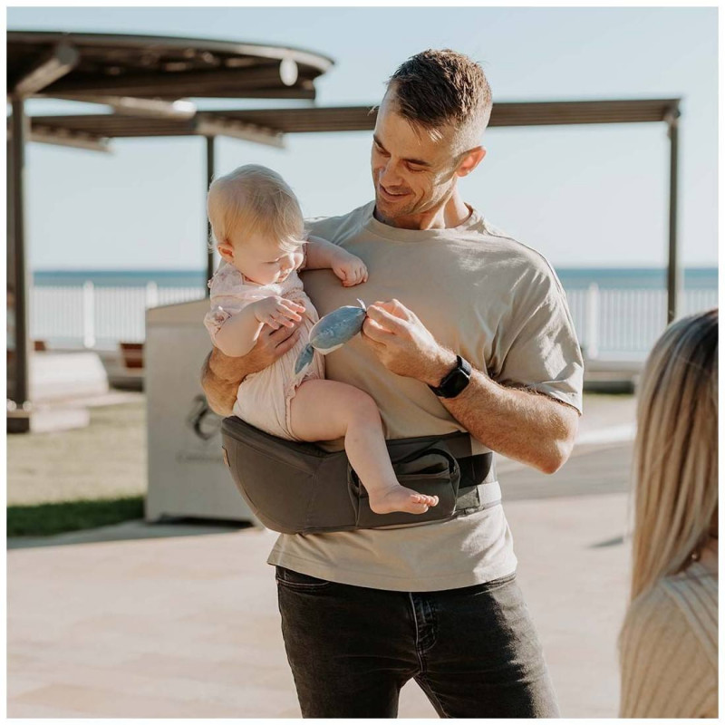 Quokkababy Hip Seat es un asiento de cadera ergonómico que actúa como complemento a los portabebés. Diseñado para aliviar la carga en brazos y espalda al llevar al bebé en situaciones cotidianas. Su asiento inclinado (≈20°) con base antideslizante favorece la postura en “M” y mejora la estabilidad del niño, mientras que el cinturón ajustable se adapta cómodamente a múltiples tallas. Cuenta con un bolsillo lateral funcional y está fabricado con interior técnico de espuma EVA y malla transpirable. Permite un uso 4 en 1 (cadera, frontal hacia el adulto, frontal hacia fuera y lactancia). No es un portabebé manos libres: el bebé debe ser sujetado con al menos un brazo.