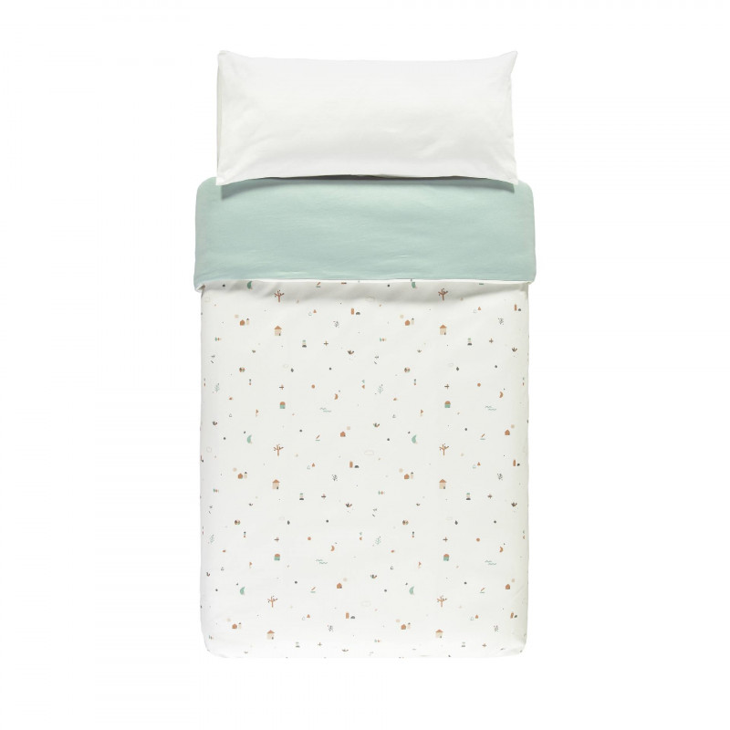 Tejido de punto de algodón 100%.Tratamiento especial anti-peeling.Contiene 3 piezas (funda nórdica, funda de almohada y bajera ajustable).