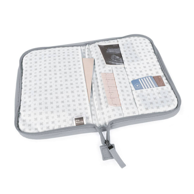El rPET que utilizamos está hecho de plástico PET reciclado de botellas de agua. El uso de este material reduce el consumo de agua, el consumo de energía y la emisión de CO2. Es una funcional carpeta portadocumentos de diseño a juego con la bolsa de maternidad. Un complemento indispensable para llevar contigo a todas partes que te ayudará a tener ordenada toda la documentación y papeles médicos de tu bebé (vacunas, recetas, partida de nacimiento).