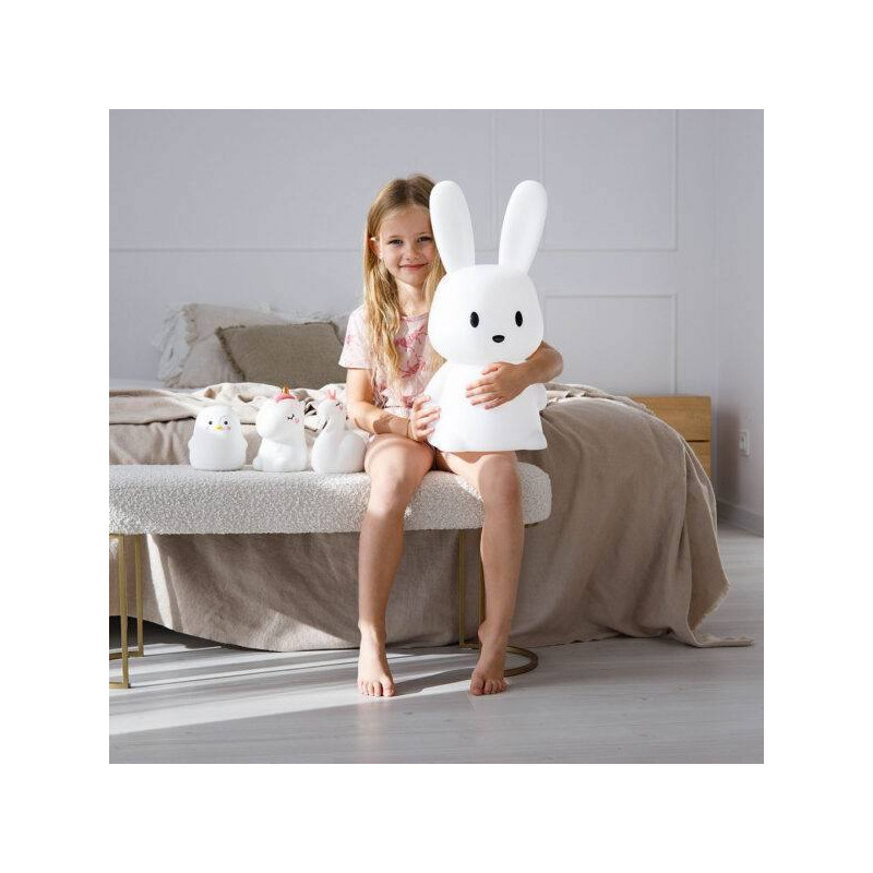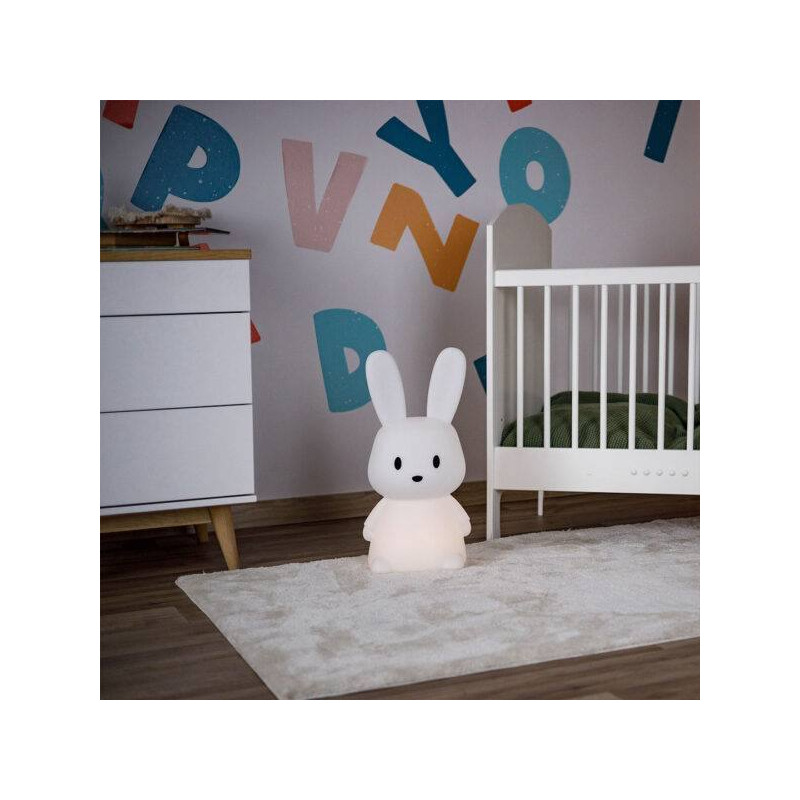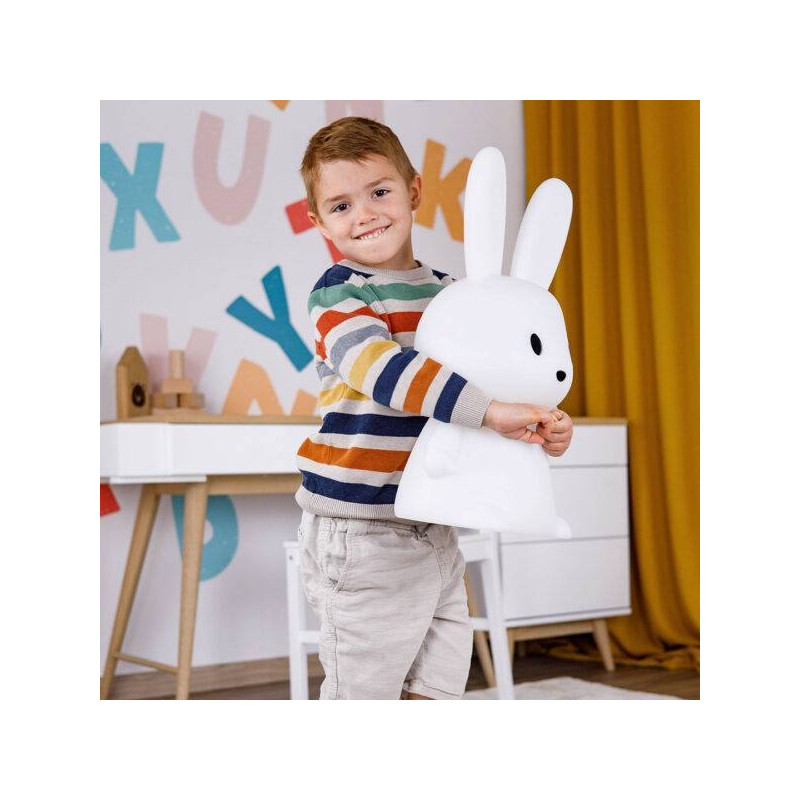 La GIOrabbit Mega Maxi no es solo una lámpara nocturna, es un adorable y funcional elemento decorativo ideal para el dormitorio de cualquier niño.