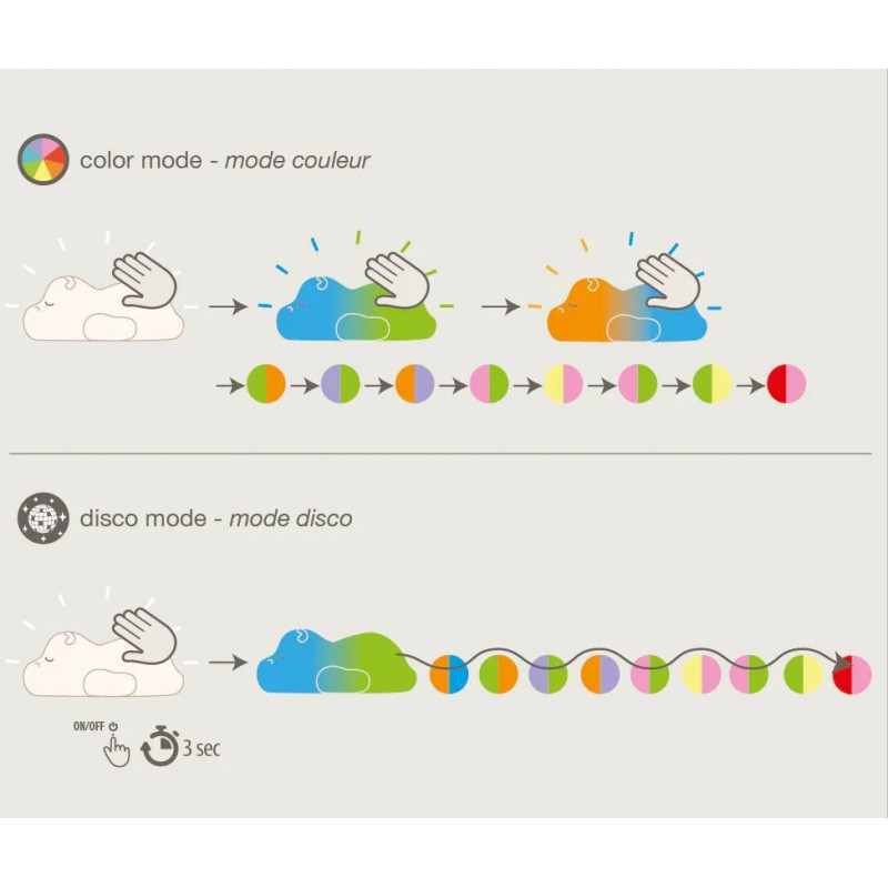 Para tener dulces sueños y conciliar el sueño con tranquilidad: la adorable luz de noche LED de Nattou es la compañera ideal para la vida diaria con bebés y niños. La luz de noche tiene diferentes colores cálidos y el simpático animalito de silicona sin BPA también es muy suave y no se calienta. Es la luz de noche ideal para el bebé y la habitación de los niños.
