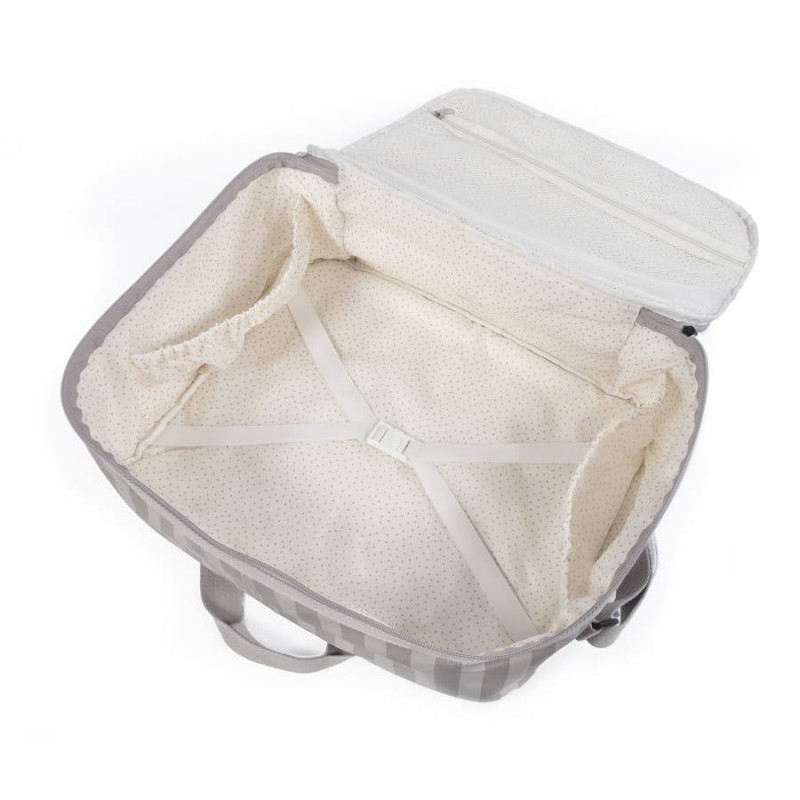 La maleta de bebé Sintra de rayas es un bolso especialmente diseñado para el momento más importante del embarazo, que es la llegada de tu bebé, momento en el que hay un montón de cosas que preparar. Por esto necesitas un espacio cómodo para transportar todo lo necesario para ti, el padre y el niño. Esta maleta de bebé es el modelo perfecto para cubrir todo lo que no puede faltar en este día tan especial. Es cómoda, ligera y manejable con dimensiones rectangulares y apertura práctica para tener todas tus necesidades cubiertas. Cuenta con cierre seguro de cremallera en ambas direcciones que facilitan su apertura, incluye una correa larga para llevar colgada en el hombro y asas cortas de mano. Además en el compartimiento interior tiene un forro a juego con gomas para contener la ropa y mantener todo en su lugar. Incluye un charm en forma de estrella donde puedes bordar el nombre de tu bebé para personalizar el bolso. Gran calidad y mucho estilo. Fabricado en un material resistente y de fácil limpieza a mano o a máquina a 30 °C. Walking Mum protege a tu bebé utilizando los mejores tejidos, libres de colorantes azoicos y sustancias nocivas para la salud. Nuestra colección Walking Mum guarda toda la calidad de la marca Pasito a Pasito pero con un particular sello de estilo urbano y moderno que no pasa desapercibido, para vestir diferente los paseos con tu bebé. Las bolsas de maternidad de esta línea son más sport y prácticas, especialmente pensadas en mamás y papás modernos que aprecian los diseños más actuales y en tendencia sin dejar de lado la calidad y la funcionalidad de los accesorios que complementan y hacen más cómodos todos los paseos con sus bebés.
