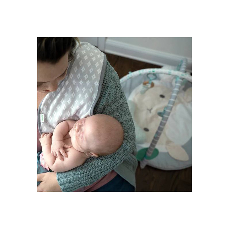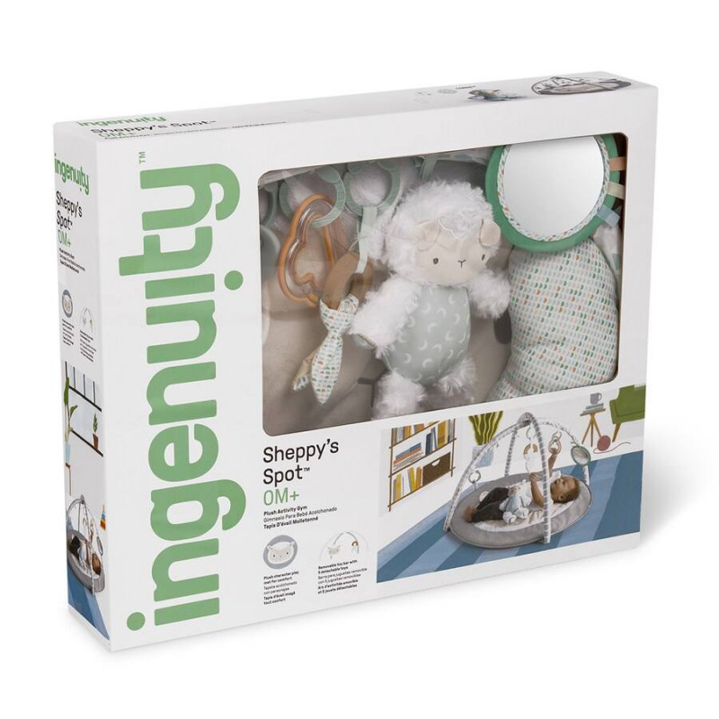 Cuando tu bebé esté listo para jugar, la manta de actividades Sheppy's Spot™ de Ingenuity será un lugar cómodo y seguro en el que podrá pasar el rato tanto tumbado boca abajo como sentado o jugando. Esta manta es tan suave como el algodón y cuenta con un cojín de apoyo que servirá como refuerzo extra para el cuello de bebés de cualquier edad cuando estén tumbados boca abajo. Los 5 muñecos que cuelgan del arco de actividades extraíble harán las delicias de cualquier bebé; un peluche Sheppy™, un anillo de madera natural con tejido estimulante, juguete de silicona natural, espejo con lazos, y sonajero que facilita la relajación y el entretenimiento. El peluche Sheppy™, el nuevo mejor amigo de tu bebé, tiene el tamaño perfecto para que os lo llevéis a todas partes y haga de compañero de juego estéis donde estéis. Esta bonita manta está diseñada para combinar con cualquier decoración, colorida o neutra, de inspiración animal o temas naturales. También es fácil de limpiar, puede guardarse fácilmente en cualquier sitio o llevarse a todas partes; basta para ello con desenganchar el arco de actividades. Las ovejas cuidan a sus crías igual que nosotros y recuerdan los momentos especiales durante años. Confía en la oveja Sheppy como compañera de los mejores momentos de toda tu familia durante años.
