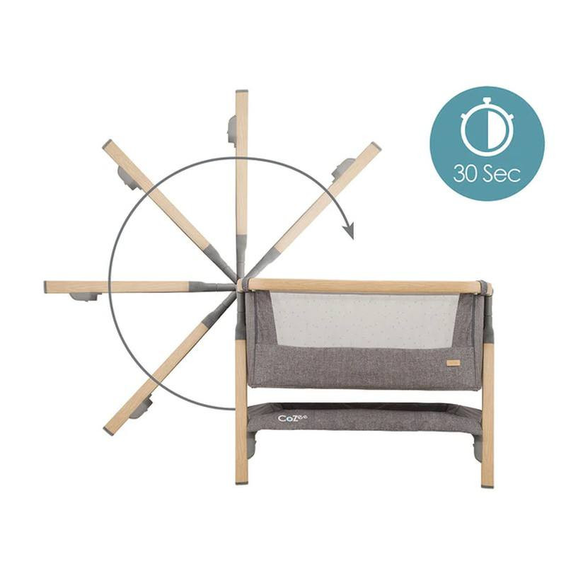 La cuna CoZee Bedside ha sido diseñada para ayudar a desarrollar ese vínculo especial con su pequeño y también se puede utilizar como una cuna independiente. Su innovador mecanismo de apertura y plegado de 30 segundos también le permite usar la cuna en movimiento, haciendo que CoZee sea el hogar de su bebé lejos de su hogar.