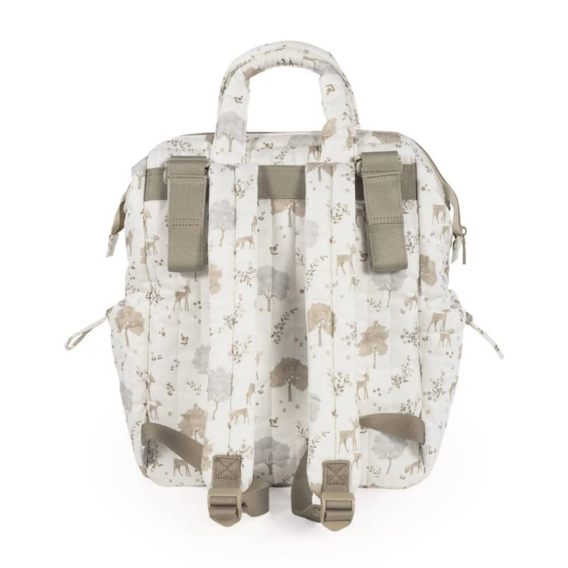 Descubre la mochila maternal Nara de Pasito a Pasito, confeccionada en loneta de algodón 100% con un delicado estampado de ciervos y árboles en tonos neutros. Su tratamiento waterproof la hace resistente al agua, garantizando protección y durabilidad en el día a día. Esta mochila ofrece gran capacidad y múltiples compartimentos, facilitando la organización de todo lo necesario para el bebé. Bolsillos interiores y exteriores para tenerlo todo a mano y en orden. También incorpora dos bolsillos laterales para botellas o biberones. Tiene 2 asas grandes ajustables para que puedas usarla colgada a la espalda, asas de mano y otras dos asas pequeñas para que puedas usarla colgada del carrito del bebé. Incluye un práctico cambiador portátil, permitiendo mayor comodidad en cualquier lugar. Perfecta para el uso diario, esta mochila de maternidad Pasito a Pasito combina estilo y funcionalidad, siendo un imprescindible para mamás que buscan calidad y diseño. Está fabricado con materiales de gran calidad, libres de colorantes azoicos, ftalatos y sustancias nocivas para la salud. Además, se puede lavar a mano o a máquina a temperaturas de hasta 30º. Los productos para bebé de Pasito a Pasito cuentan con un diseño muy diferente a todas las demás. Sus colecciones se caracterizan por el trabajo al detallada, pensadas siempre desde un punto de vista práctico. Utilizan materiales de primera calidad para remarcar la elegancia y la armonía en cada una de sus piezas. Nuestros modelos son exclusivos y de estilo inconfundible, pensados para madres actuales que gozan de buen gusto y que aprecian los detalles tanto como nosotros.