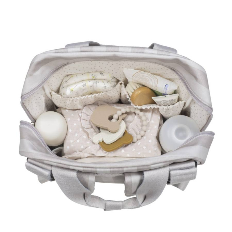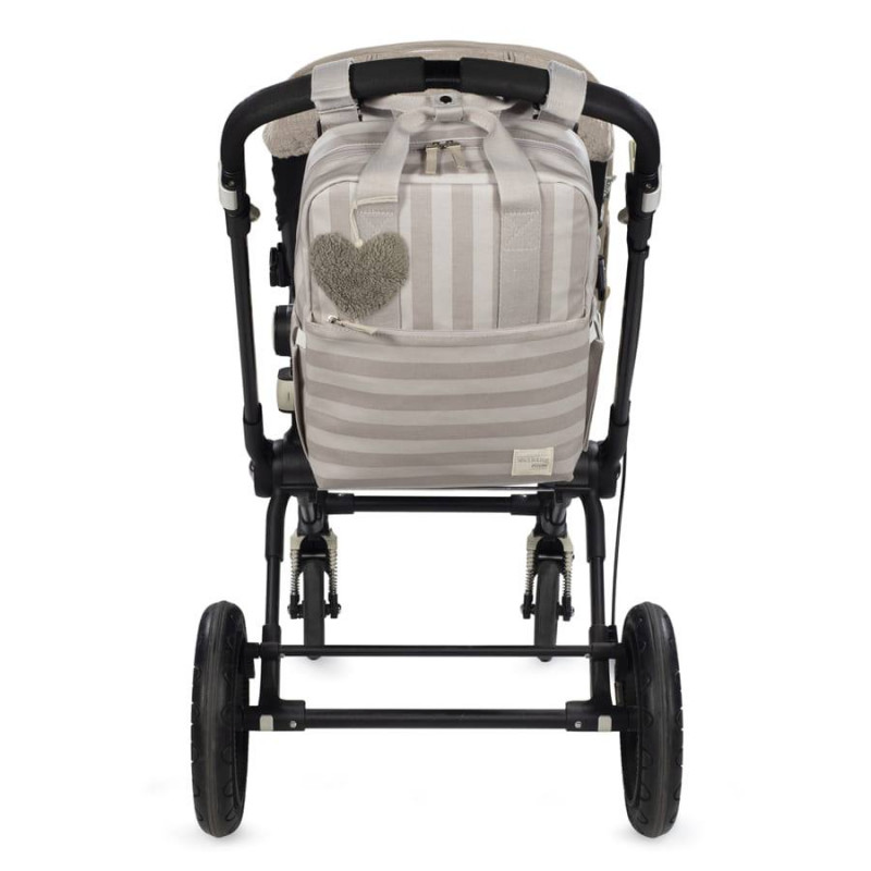 La bolsa Sintra de rayas verdes para silla de paseo es un modelo multifunción muy ligero, resistente y de gran capacidad para llevar todo lo necesario en el paseo del bebe. Incluye un charm en forma de corazón donde puedes bordar el nombre de tu bebé para personalizar el bolso. Su esquema ofrece múltiples bolsillos exteriores e interiores para poder tener todo ordenado y a mano. Tiene bolsillos para guardar los biberones y mantenerlos seguros, elásticos para colocar cubiertos, para las toallitas húmedas, también tiene un funda para la botella de agua y otros más. Incluye un cambiador a juego con el bolso de maternidad y un bolsillo plastificado para almacenar la ropa mojada y aislar la humedad del resto de la mochila. También tiene un bolsillo exterior para las toallitas húmedas. El bolso incluye 2 asas cortas ajustables que facilitan la colocación en cualquier modelo de silla de paseo, asas de mano y correas acolchadas para colgar en los hombros hacia la espalda, sin generar molestias por el peso. Gran calidad y mucho estilo. Fabricada en un material resistente y de fácil limpieza. Walking Mum protege a tu bebé utilizando los mejores tejidos, libres de colorantes azoicos y sustancias nocivas para la salud. Nuestra colección Walking Mum guarda toda la calidad de la marca Pasito a Pasito pero con un particular sello de estilo urbano y moderno que no pasa desapercibido, para vestir diferente los paseos con tu bebé. Las bolsas de maternidad de esta línea son más sport y prácticas, especialmente pensadas en mamás y papás modernos que aprecian los diseños más actuales y en tendencia sin dejar de lado la calidad y la funcionalidad de los accesorios que complementan y hacen más cómodos todos los paseos con sus bebés.