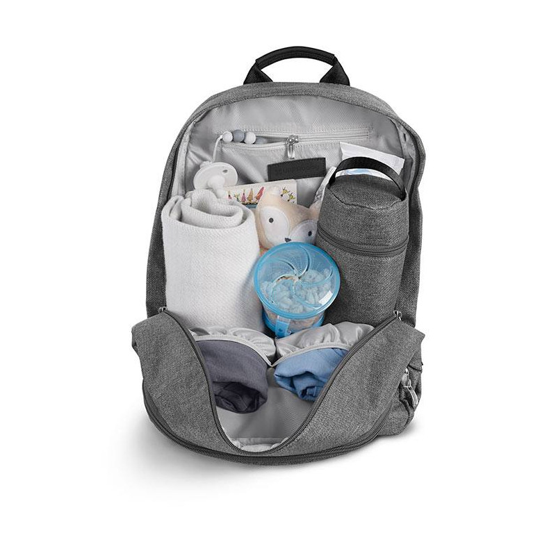 En la espalda o en la silla de paseo, guarda todo lo que necesites en nuestra elegante Mochila cambiador. Su tejido de alta calidad y los detalles en piel van perfectamente a juego con tu silla de paseo UPPAbaby, mientras que las correas ajustables y los