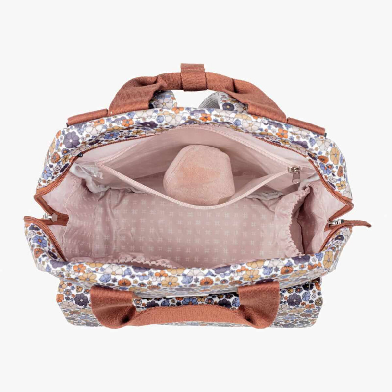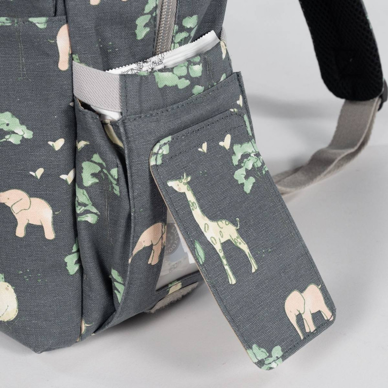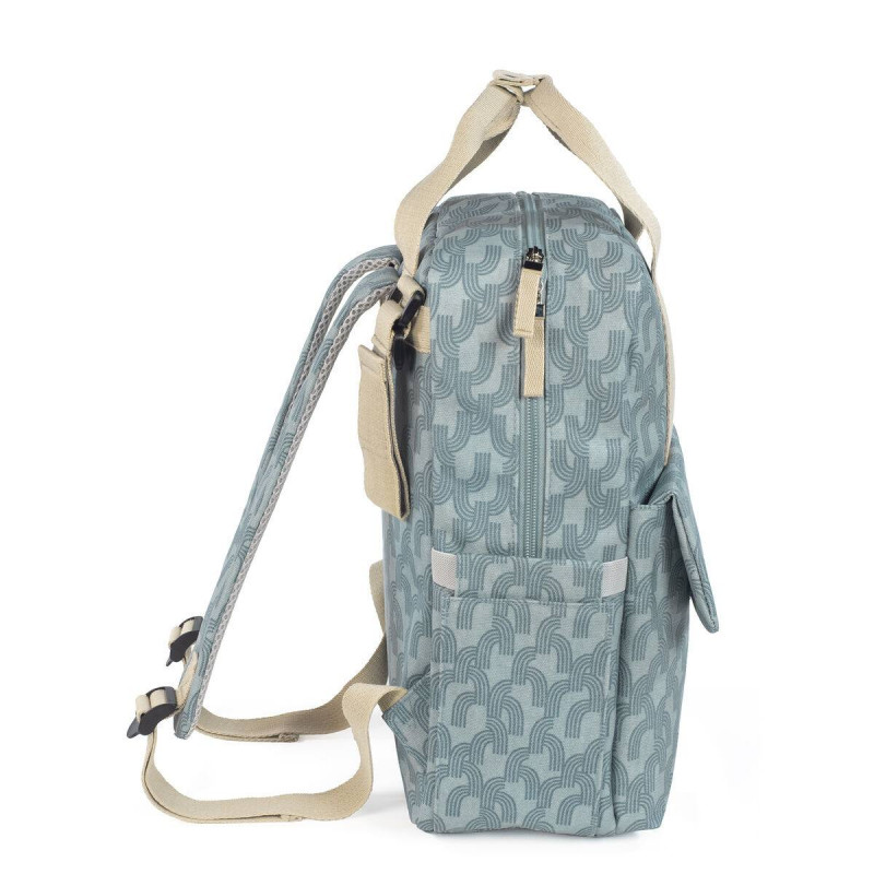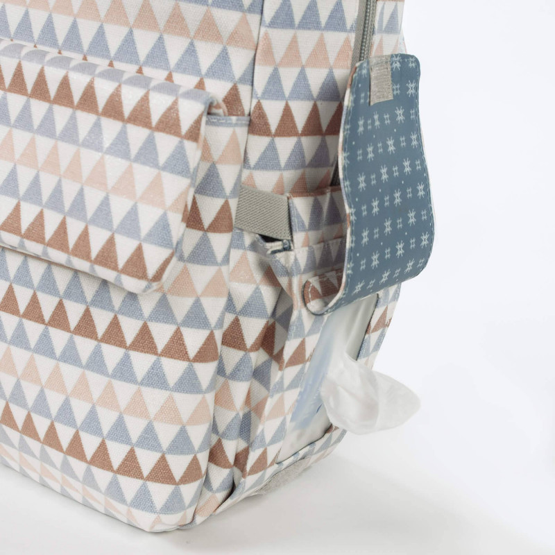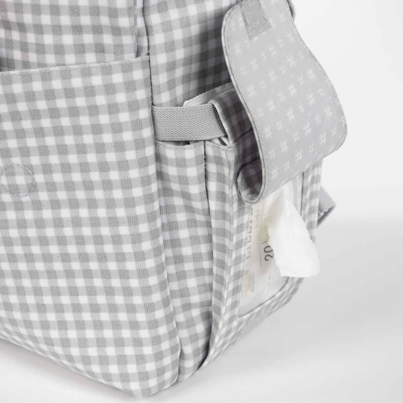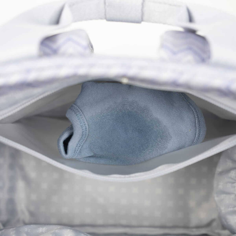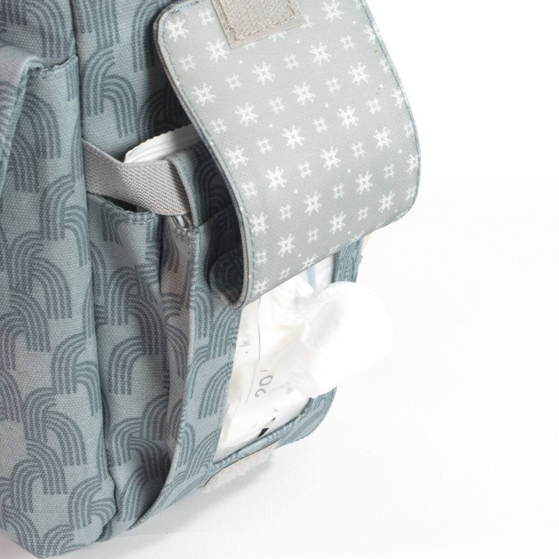 Incluye un cambiador a juego con el bolso de maternidad y un bolsillo plastificado para almacenar la ropa mojada y aislar la humedad del resto de la mochila.