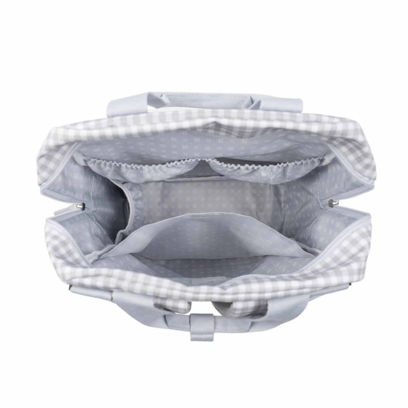 El bolso incluye 2 asas cortas ajustables que facilitan la colocación en cualquier modelo de silla de paseo, asas de mano y correas acolchadas para colgar en los hombros hacia la espalda, sin generar molestias por el peso.