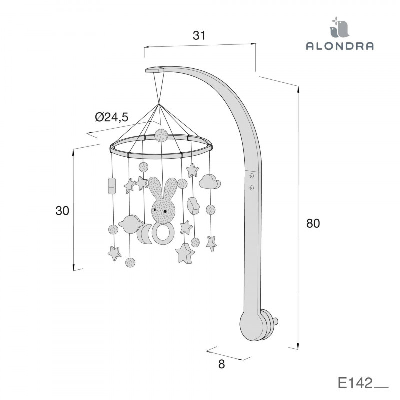El móvil de cuna Axis está hecho de madera e incluye 2 piezas: un soporte-brazo curvado y el colgador con diferentes juguetes. El colgador incluye nubes, estrellas, lunas y un sonajero en el centro en forma de conejito. Este móvil fomenta el desarrollo de las habilidades motrices y visuales de tu bebé, y aumenta la concentración. Además, su suave movimiento ayudará a calmar y dormir al recién nacido.