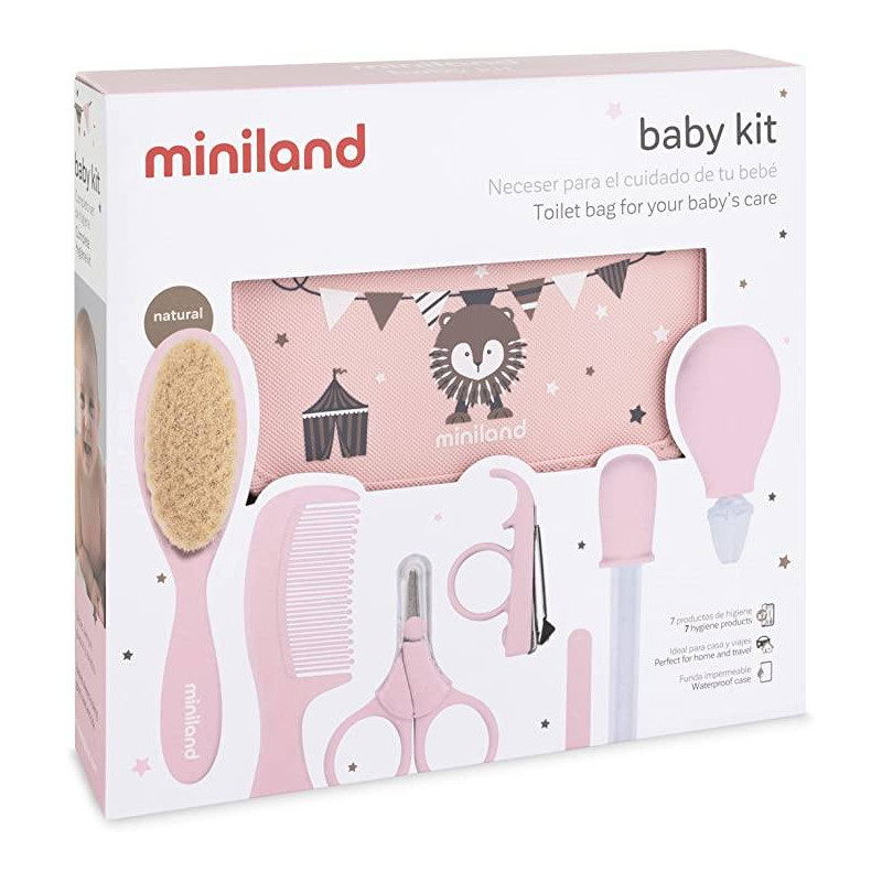 El estuche de baby kit es de material impermeable, hecho que contribuye a una mayor higiene y una fácil limpieza, evitando que los componentes se ensucien o humedezcan.