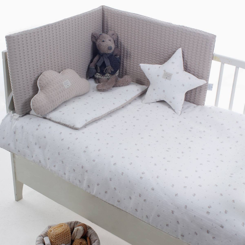 Pack de cuna compuesto por nórdico (funda y relleno) y protector, totalmente desenfundable y reversible