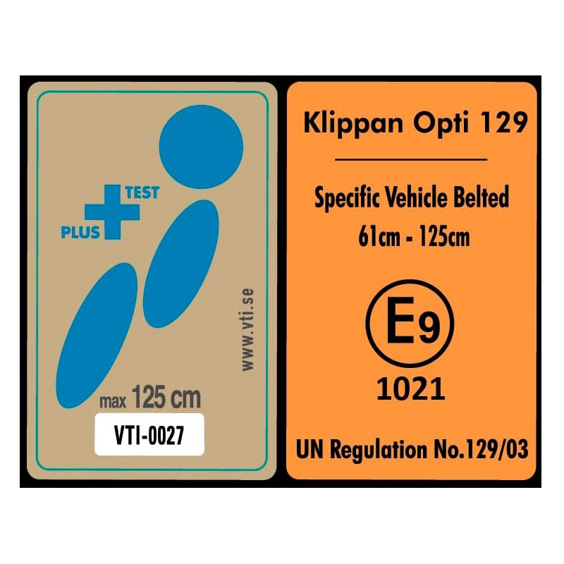 La nueva silla Klippan Opti 129 es una silla de instalación exclusivamente a contramarcha, de grupo 1/2, desde 61 hasta 125cm, con cinturón de seguridad de 3 puntos, pata de apoyo y lower tether. Tiene un límite recomendado de peso máximo de 32kg testados. Es la primera silla a contramarcha con homologación i-Size hasta 125 cm.