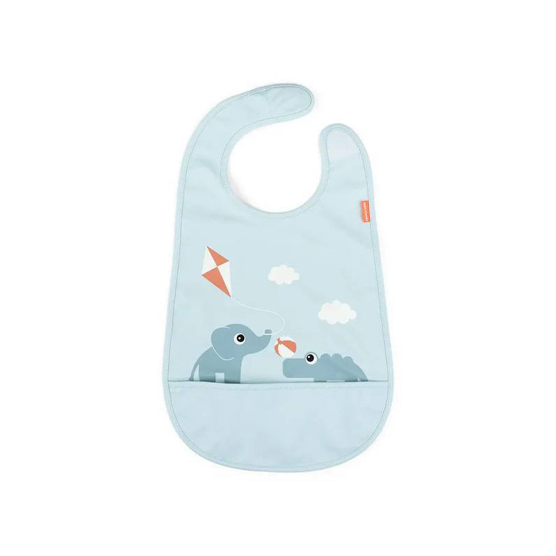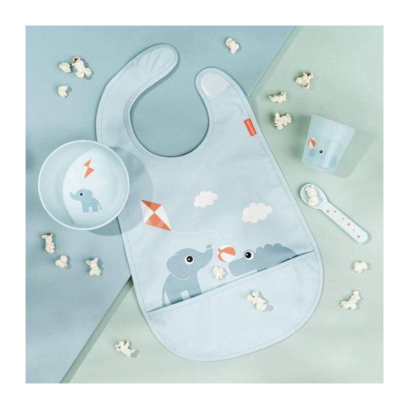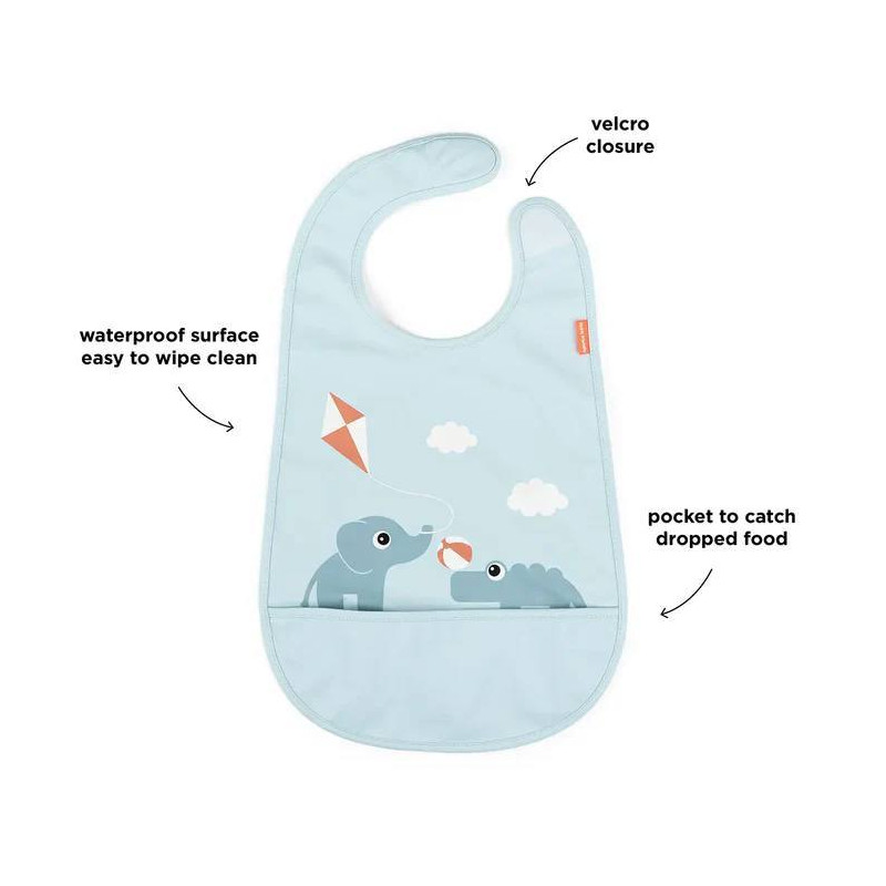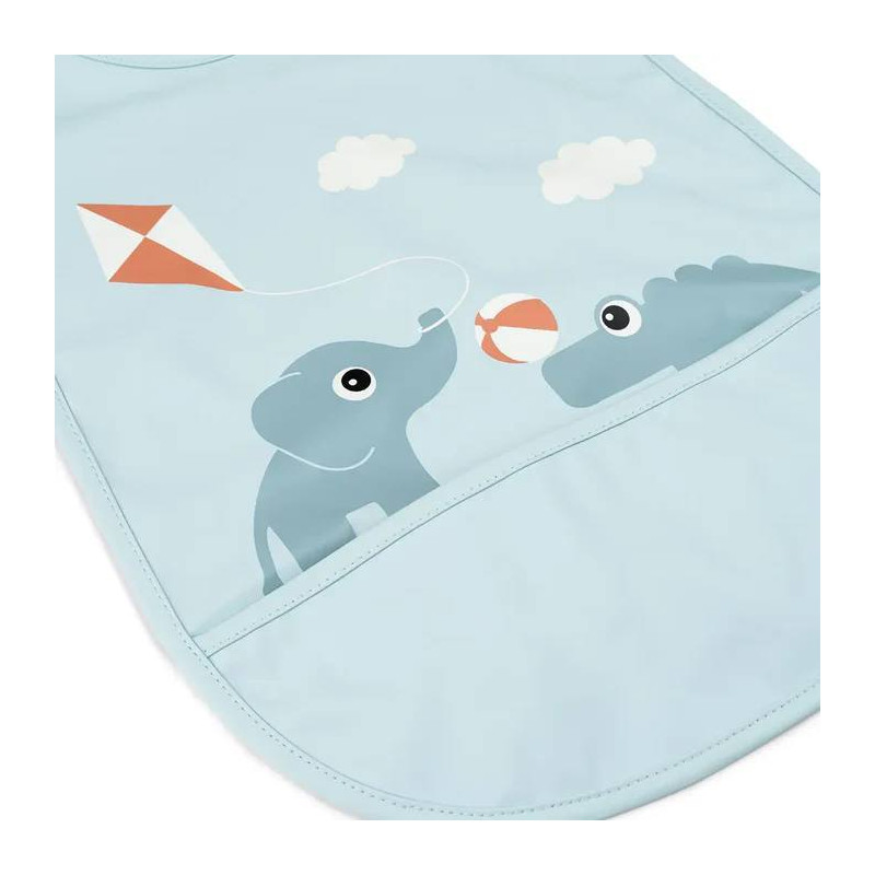 El babero es impermeable con prácticas mangas elásticas y cierre de velcro. Es fácil de limpiar.