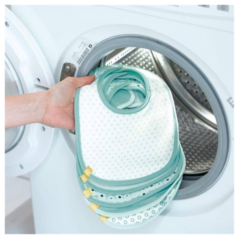 Los baberos son adecuados para bebés y niños pequeños de 3 a 18 meses y se pueden lavar a máquina a 40 °C. Consejo: Abroche las correas de velcro antes de lavar y use una bolsa de lavandería.