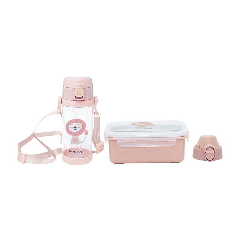 Pack para el almuerzo. Este set incluye una botella con doble tapón, uno con pajita y otro con boquilla. La fiambrera de acero inoxidable es fácil de limìar y mantiene los alimentos en buen estado. Un regalo ideal para ir al colegio.