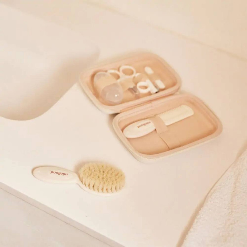 El pelo del bebé siempre estará perfecto gracias al peine y al cepillo de cerdas suaves. Las uñitas siempre bien cortadas, porque a las tijeras, corta uñas y limas incluidas no se les escapará ni un detalle.