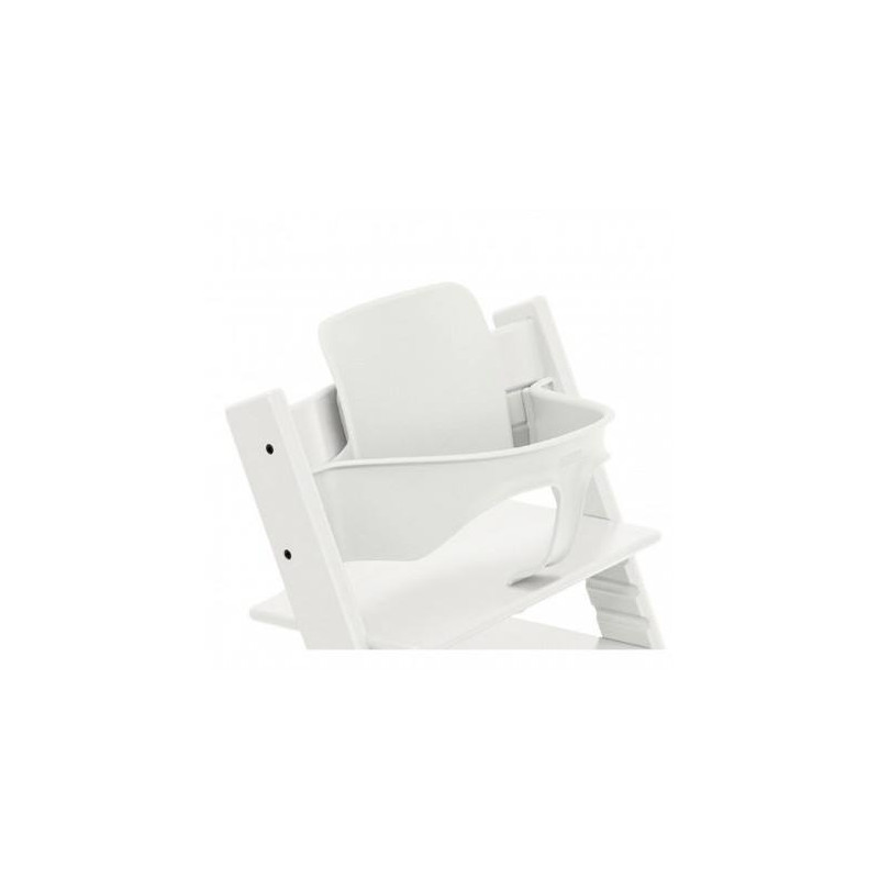 Alrededor de los seis a nueve meses, tu bebé será capaz de empezar a sentarse derecho sin ayuda. El Baby Set tiene un respaldo alto y una barra de sujeción con correa de entrepierna integrada que permiten al bebé sentarse segura y cómodamente en la mesa. Se adapta a la versión europea de Tripp Trapp producida después de mayo de 2003.