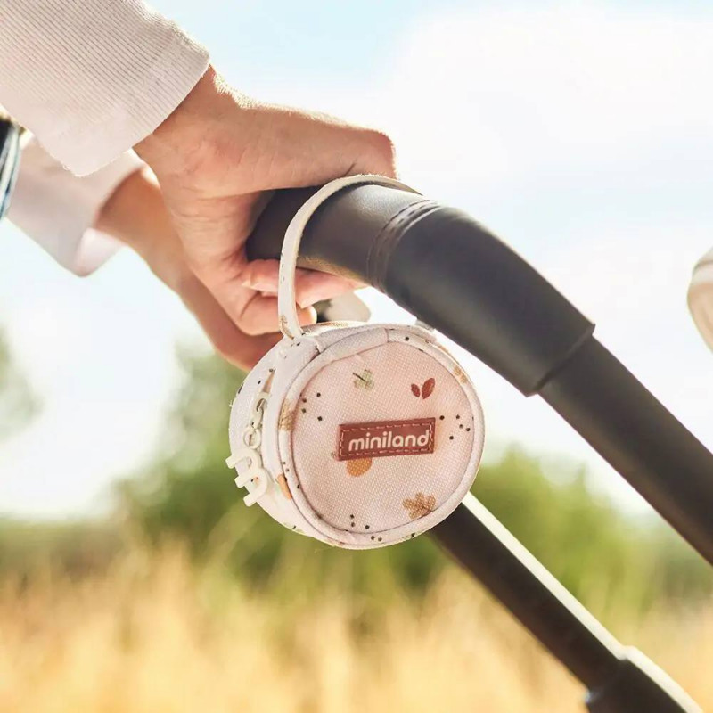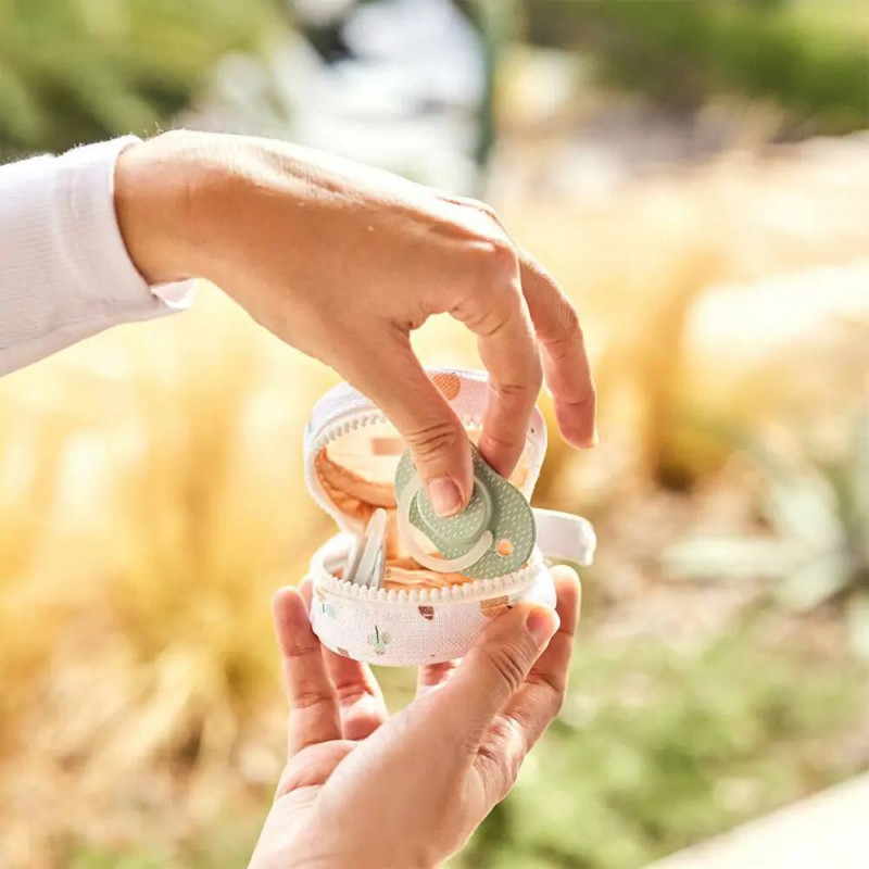 Ideal para llevar los chupetes, de forma cómoda y ordenada, en bolsos o colgado en el carrito de paseo para bebés.