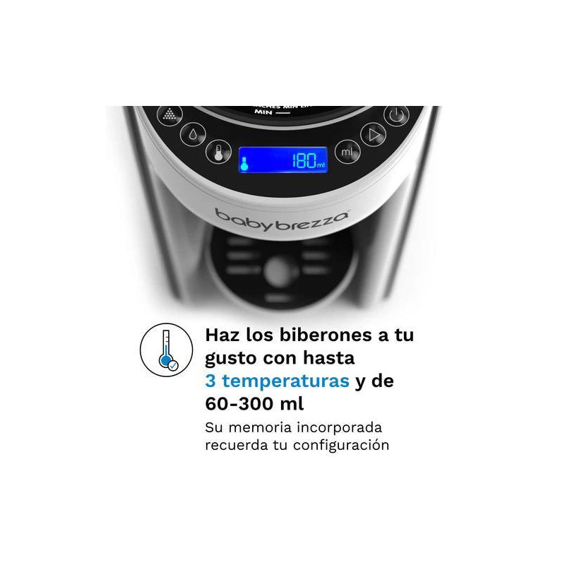 Universal, se adapta a todos los tamaños de biberones y le permite preparar la gran mayor parte de las marcas de leche infantil del mercado.