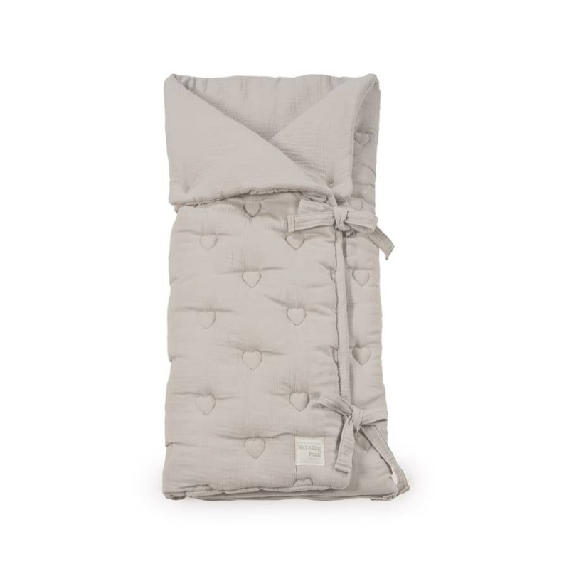 Saco arrullo o saco manta Sintra con corazones bordados. Está fabricado con una suave muselina 100% algodón. Ideal para los primeros dias del bebé. Es perfecto para los primeros paseos en el capazo. Se convierte en una manta para la cuna. Practico cierre tipo sobre con lazos y cierre con cremallera en la parte inferior en los pies para que el bebé esté abrigado. Gran calidad y mucho estilo. Fabricado en materiales resistentes y de fácil limpieza a mano o a máquina a 30 °C. Walking Mum protege a tu bebé utilizando los mejores tejidos, libres de colorantes azoicos y sustancias nocivas para la salud. Nuestra colección Walking Mum está diseñada con un particular sello de estilo urbano y moderno que no pasa desapercibido, para vestir diferente los paseos con tu bebé. Los accesorios de esta línea son más sport y prácticos, especialmente pensados en mamás y papás modernos que aprecian los diseños más actuales y en tendencia sin dejar de lado la calidad y la funcionalidad de los complementos que hacen más cómodos todos los paseos con sus bebés. Especificaciones: