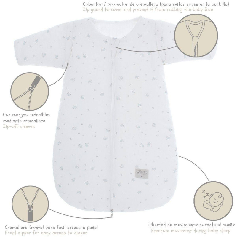 Los sacos para dormir son muy prácticos cuando el bebé empieza a moverse en la cuna y a patalear. Además de mantenerlo abrigado durante toda la noche es un artículo de seguridad, ya que permite prescindir de sábanas y mantas y evitar posibles sofocaciones.