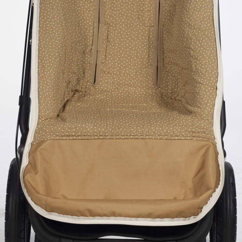 La funda de silla para bebé POPPY está fabricado con un tejido de 100% algodón. Es la funda ideal para cubrir la base de la silla de paseo y viene provista de saco para arropar a tu bebé