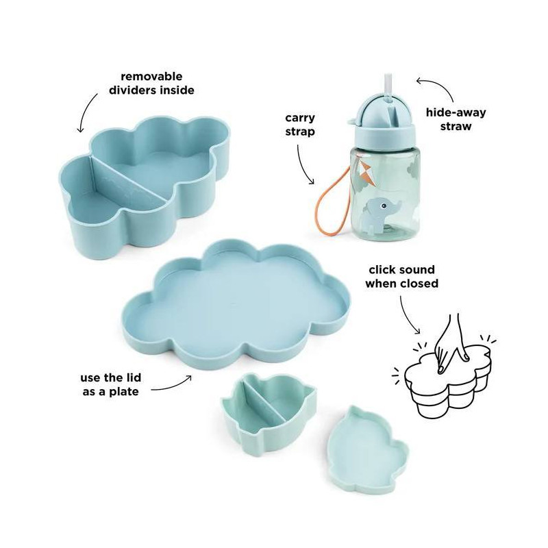Las lindas ilustraciones de Birdee y Elphee volando una cometa agregan un toque divertido a la hora de la comida. Ideal para preescolar, escuela y aventuras al aire libre, nuestro juego de cajas para almuerzo y refrigerio garantiza que su pequeño se mantenga nutrido y equipado con estilo cuando esté fuera de casa.