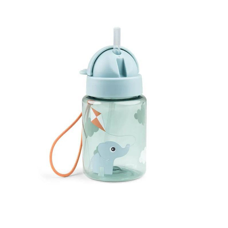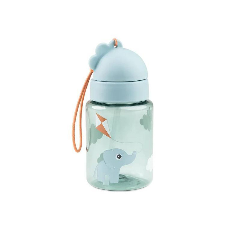• La botella azul transparente tiene una pajita práctica y, una vez oculta, la tapa evita que el líquido se derrame