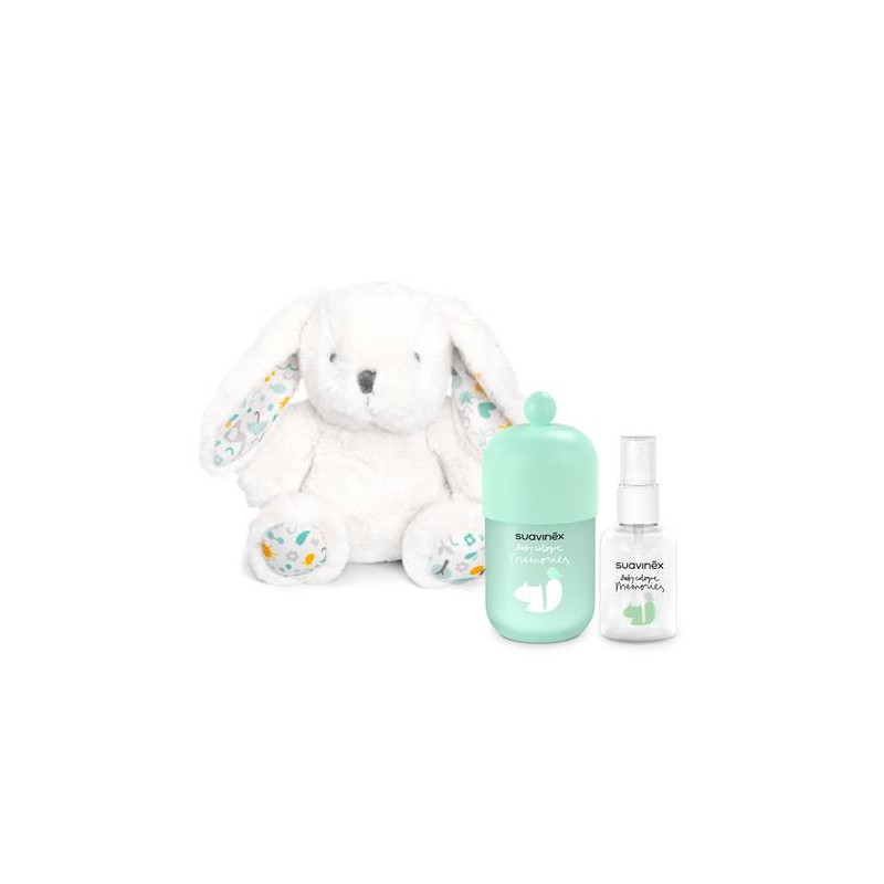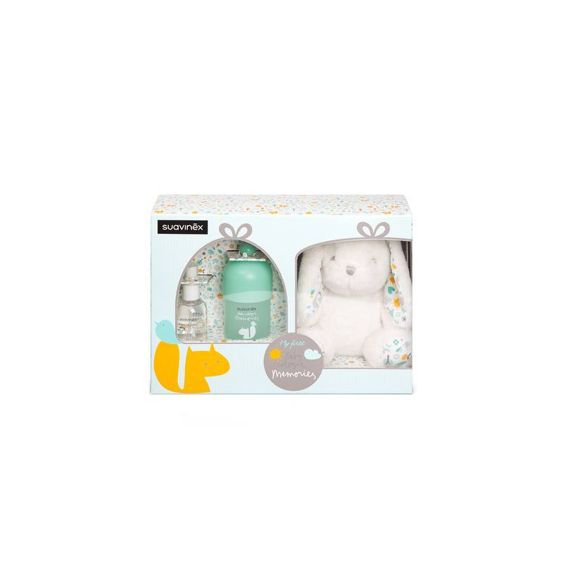 Este precioso set incluye nuestra fragancia Baby Cologne Memories 100ml, Baby Cologne Memories 50ml formato viaje y un suave peluche de conejito.