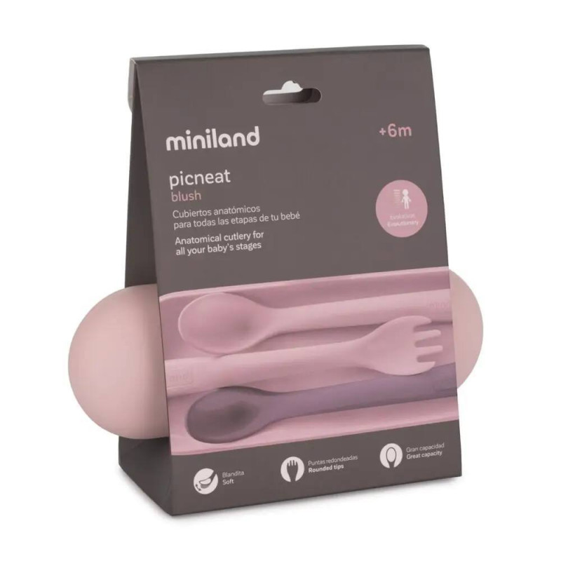 picneat consta de una cuchara blandita y delicada con las encías para la introducción del alimento, una cuchara de gran capacidad y un tenedor de puntas redondeadas para una mayor seguridad.