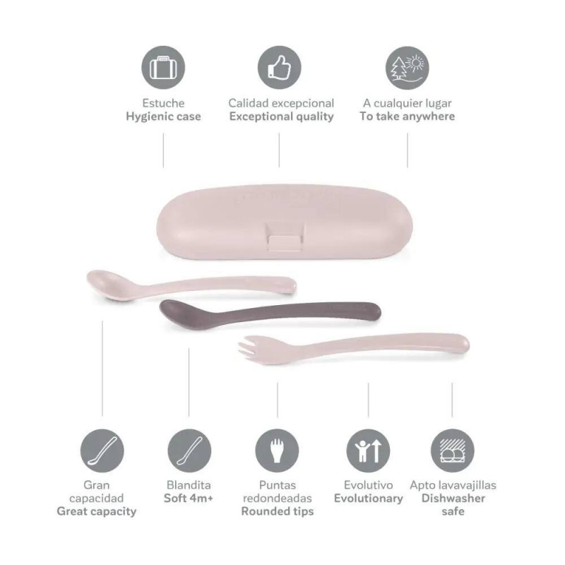 Gracias a su estuche con cierre de seguridad, los papás podrán mantener los cubiertos siempre guardados higiénicamente. Además, este accesorio también permite llevarlos a cualquier parte de la manera más cómoda y fácil.