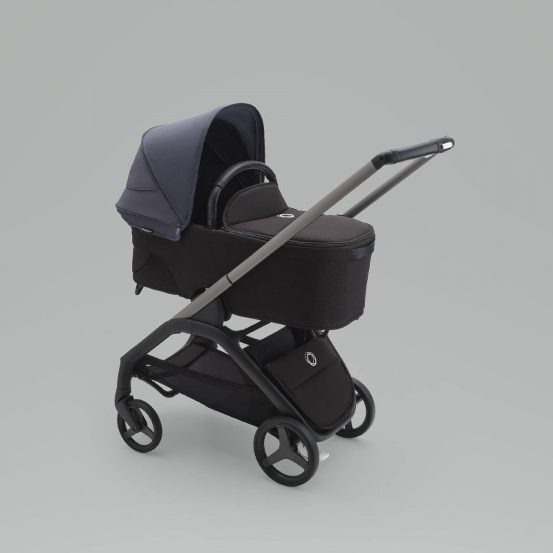 Redefiniendo la practicidad urbana, el Bugaboo Dragonfly puede plegarse sin quitar ni la silla ni el capazo, en cualquier posición y con una sola mano.