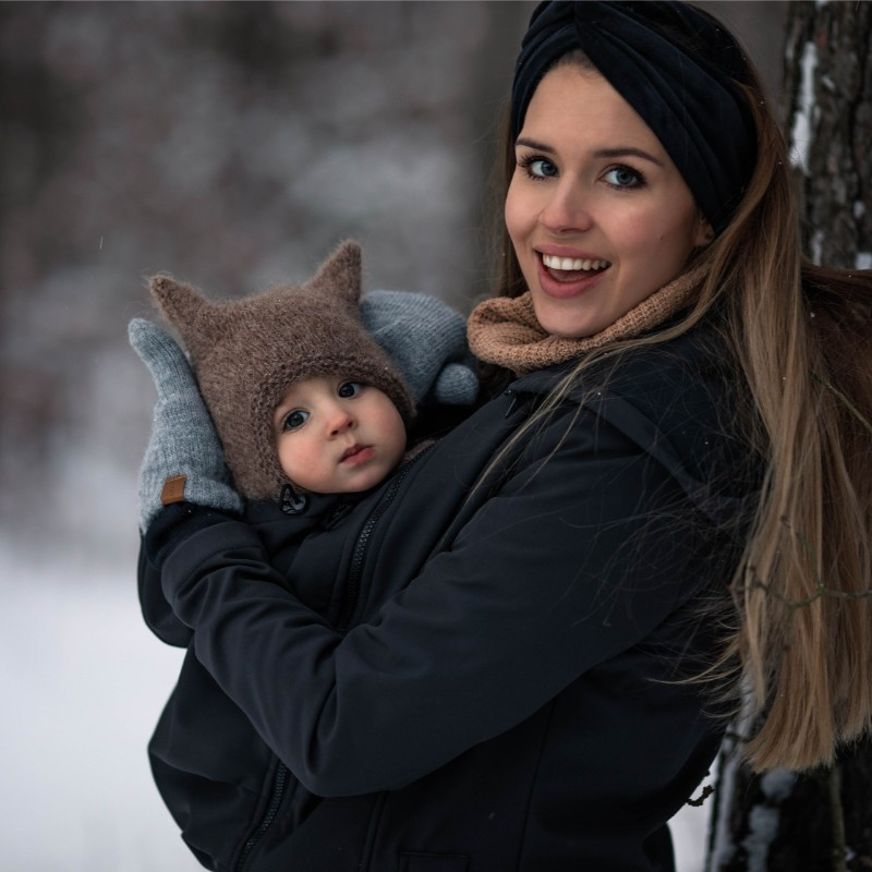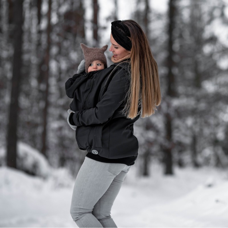 SOFTSHELL Everest 3 en 1 es una chaqueta multifuncional con dos inserciones extraíbles. El primer inserto tiene forma de «lágrima» para proporcionar más espacio al vientre en crecimiento durante el embarazo. El segundo inserto se utiliza para proteger al niño durante el paseo del viento, la lluvia y el frío. Una vez retirados todos los insertos, la chaqueta puede utilizarse como una prenda exterior normal en los días más frescos. Es resistente al viento y al agua, y tiene bolsillos con cremallera. Está equipada con topes de cordón elástico y puños, lo que permite a la madre adaptar mejor la chaqueta a sus necesidades.