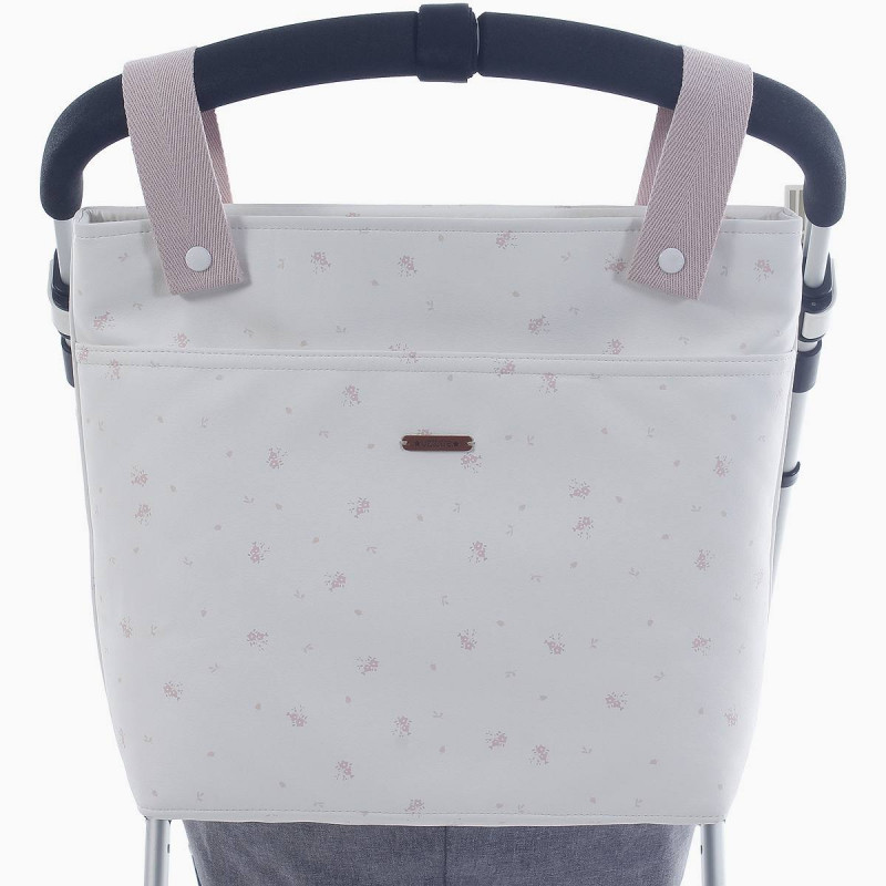 Se puede acoplar a cualquier tipo de cochecito y también permite poderlo llevar en el hombro gracias a una tira que va en el interior.