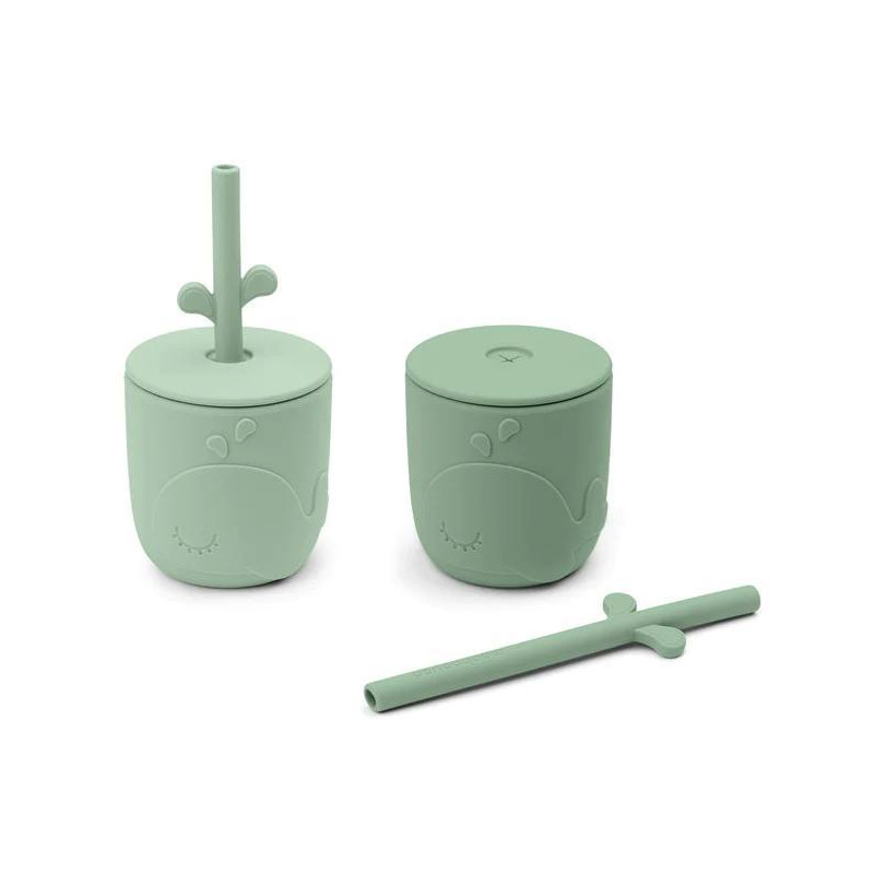 Los lindos vasos de entrenamiento Wally están hechos de silicona de grado alimenticio, lo que los hace irrompibles y agrega características de fácil agarre. Apto para lavavajillas y apto para uso en horno, microondas y congelador. Se incluye un práctico cepillo para facilitar la limpieza de las pajitas.