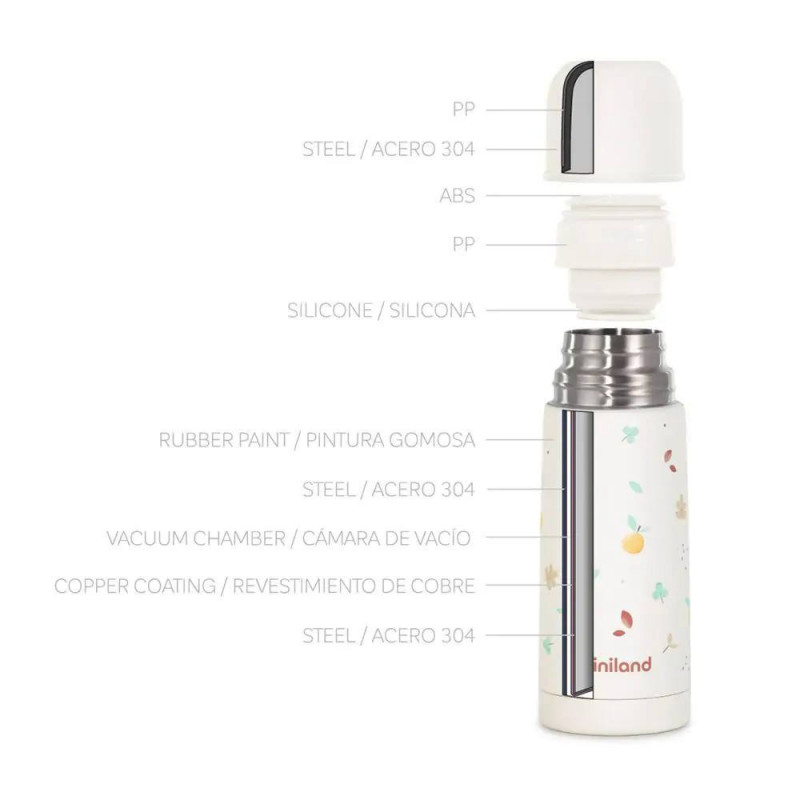 Mantiene la temperatura de los líquidos más de 24 horas: Los termos de Miniland presentan una alta resistencia y eficacia gracias a su doble pared de acero con exclusiva capa de cobre y su cámara de vacío.