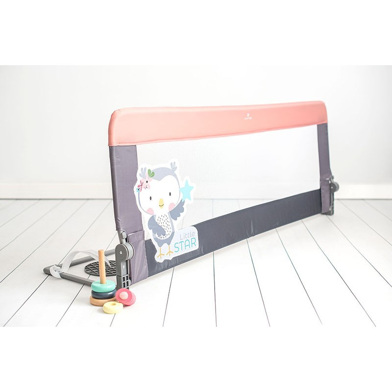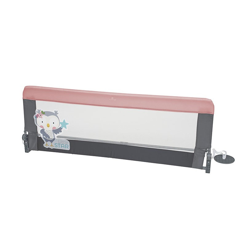Para evitar las caídas de la cama mientras el niño duerme, el uso de una barrera se hace imprescindible. De fácil instalación debajo del colchón con anclajes que la fijan a la cama y con un sencillo sistema abatible para que el peque pueda entrar y salir