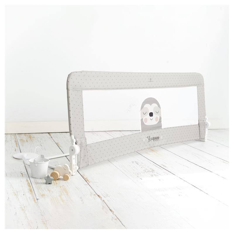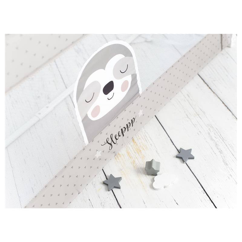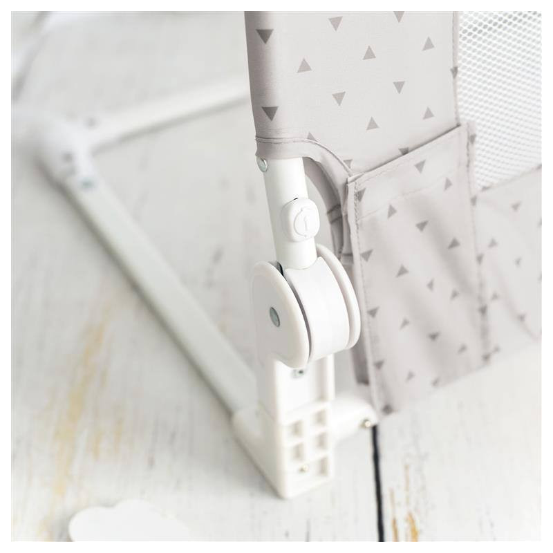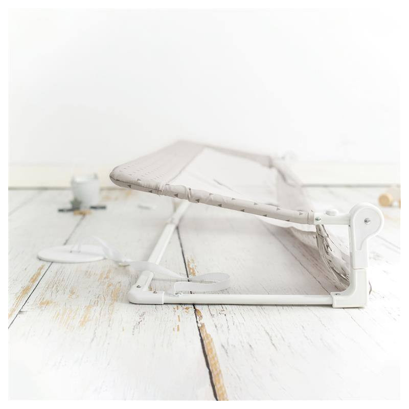 Para evitar las caídas de la cama mientras el niño duerme, el uso de una barrera se hace imprescindible. De fácil instalación debajo del colchón con anclajes que la fijan a la cama y con un sencillo sistema abatible para que el peque pueda entrar y salir