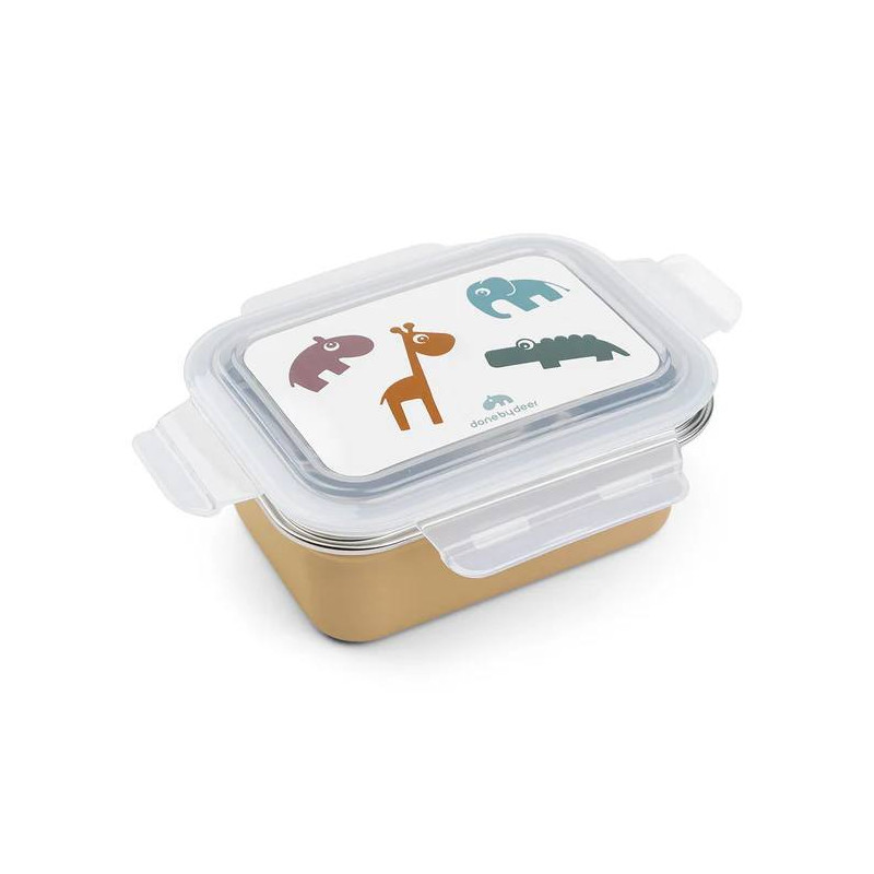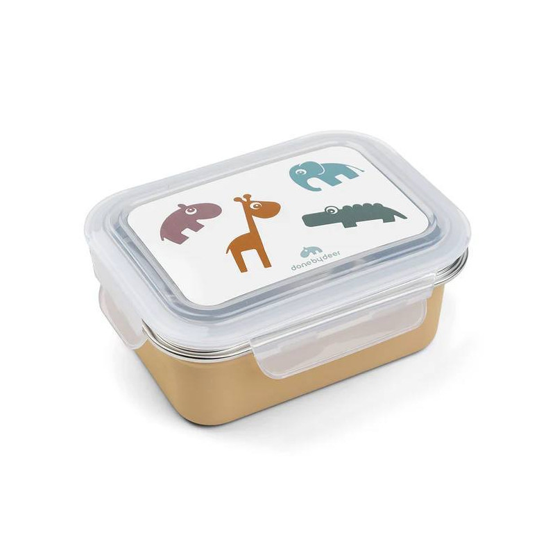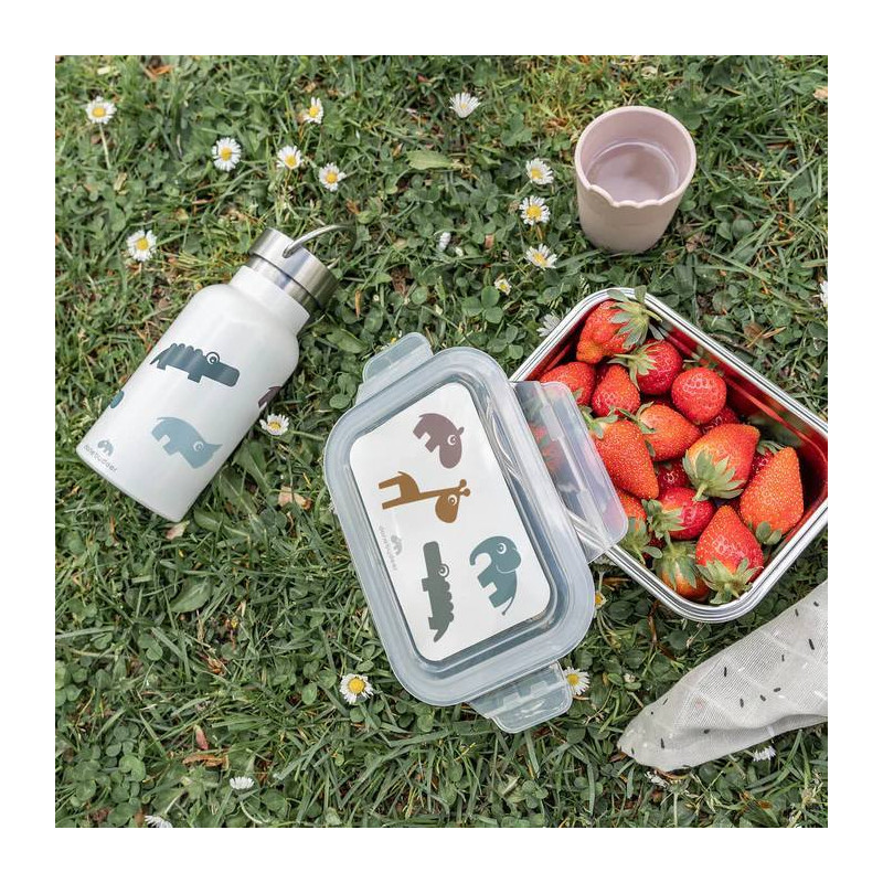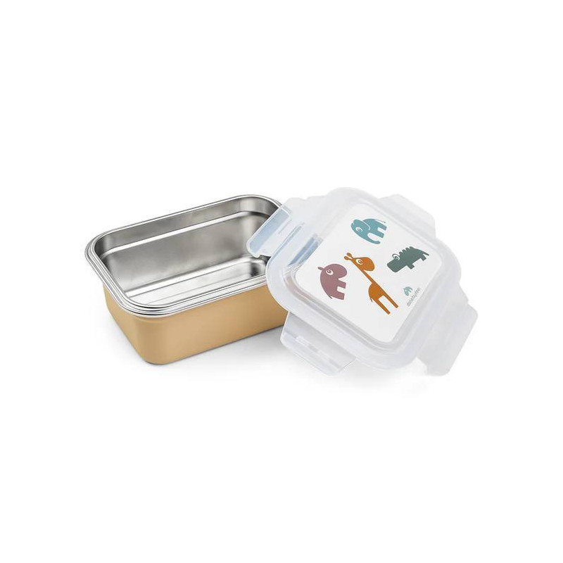 La lonchera de metal es perfecta para el almuerzo de tu pequeño y la tapa de plástico se cierra herméticamente en la lonchera de acero inoxidable.