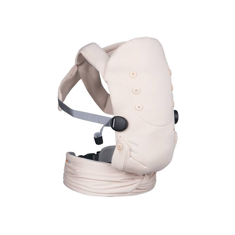 Proporciona apoyo de rodilla a rodilla y favorece una profunda posición en M. La base del portabebés se puede ajustar al crecimiento del bebé