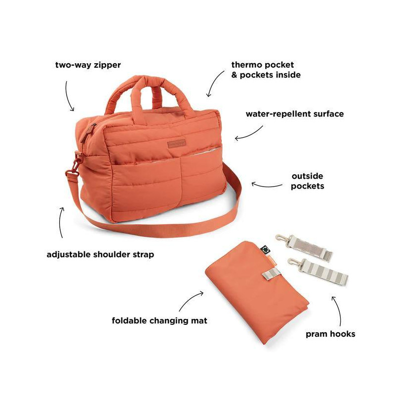 Con este genial bolso cambiador acolchado tendrás suficiente espacio para llevar todo lo que necesitas para tu peque y para ti.