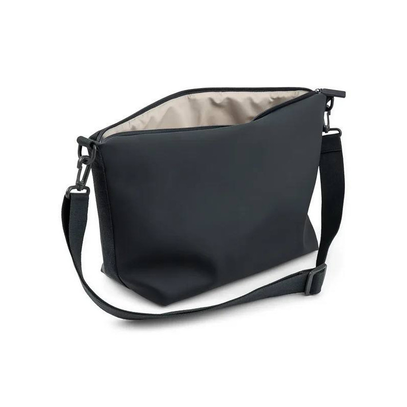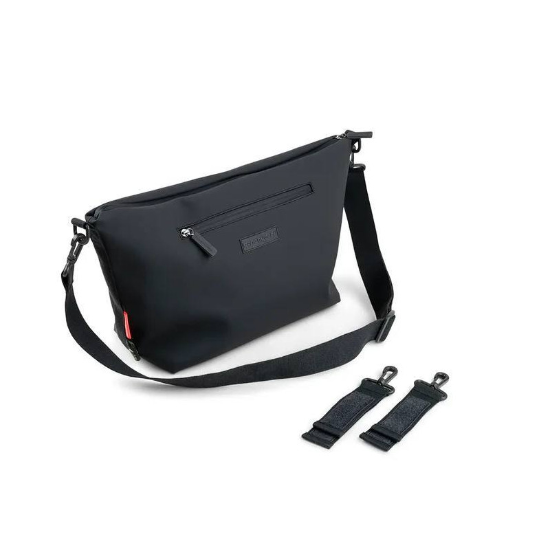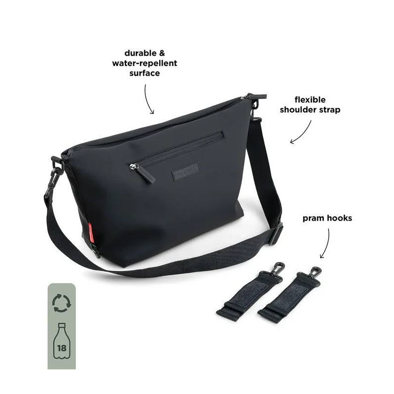 Este bolso para cochecito es una forma práctica y elegante de mantener organizados y a mano los artículos esenciales de usted y su pequeño. Se fija fácilmente al asa del capazo mediante los ganchos del cochecito.