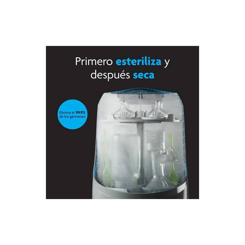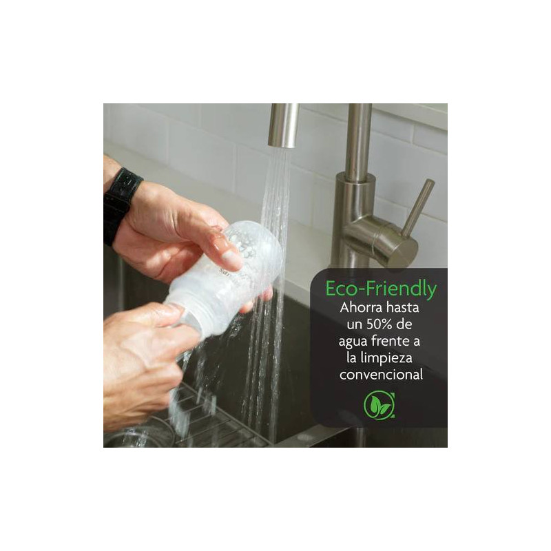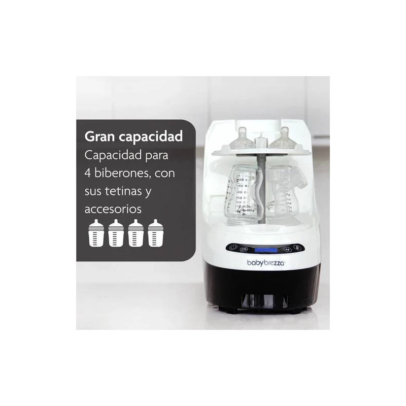 Automáticamente lava, esteriliza y seca biberones, piezas del extractor y vasos con boquilla. ¡Nunca más uses un cepillo para biberones!
